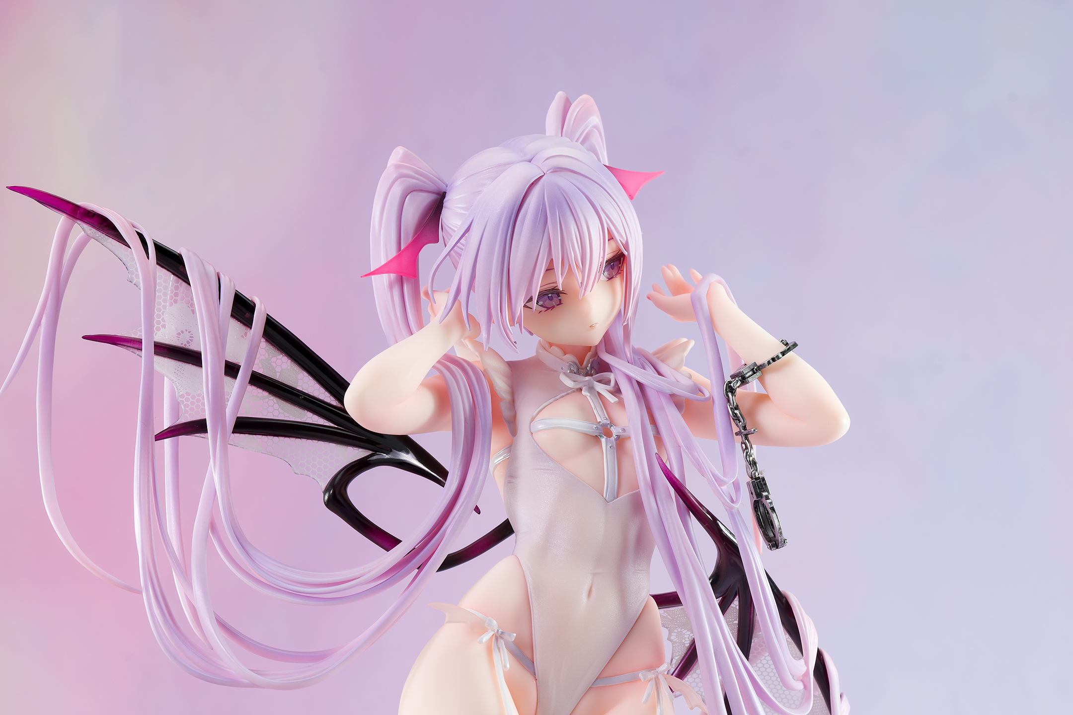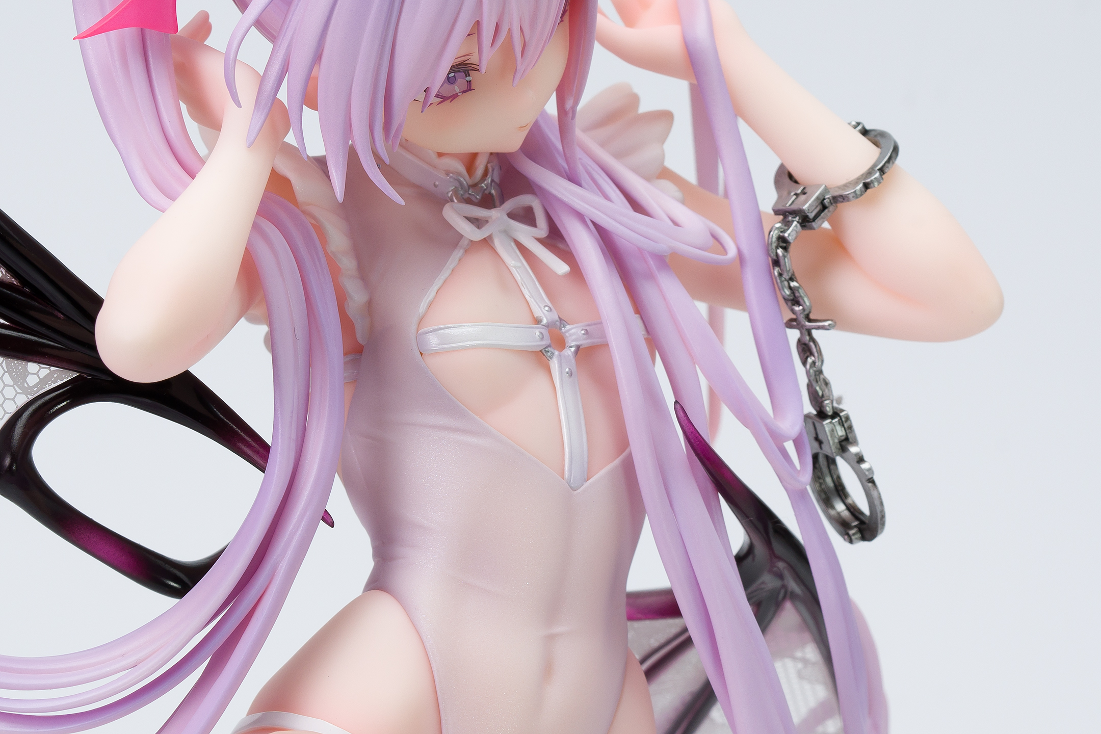 衣装はパール塗装が施されており質感が高く、クリアパーツの羽も美しいです。