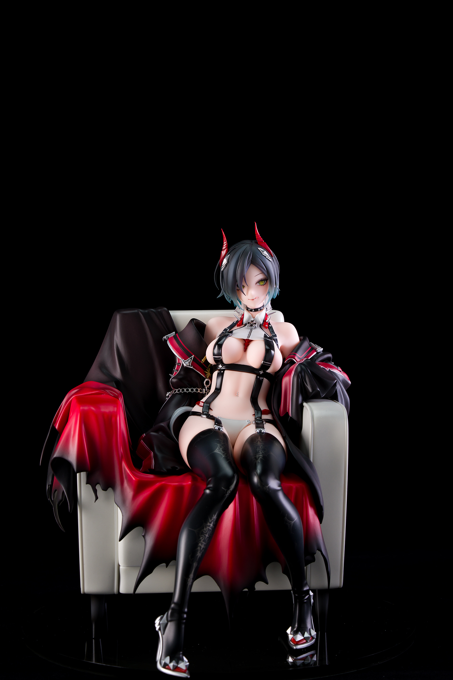 ソファの上に上着の衣装パーツを乗せ、そこに本体ボディをはめ込む仕様です。