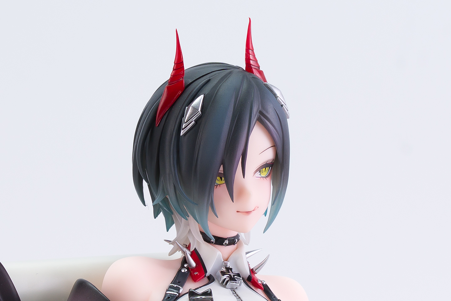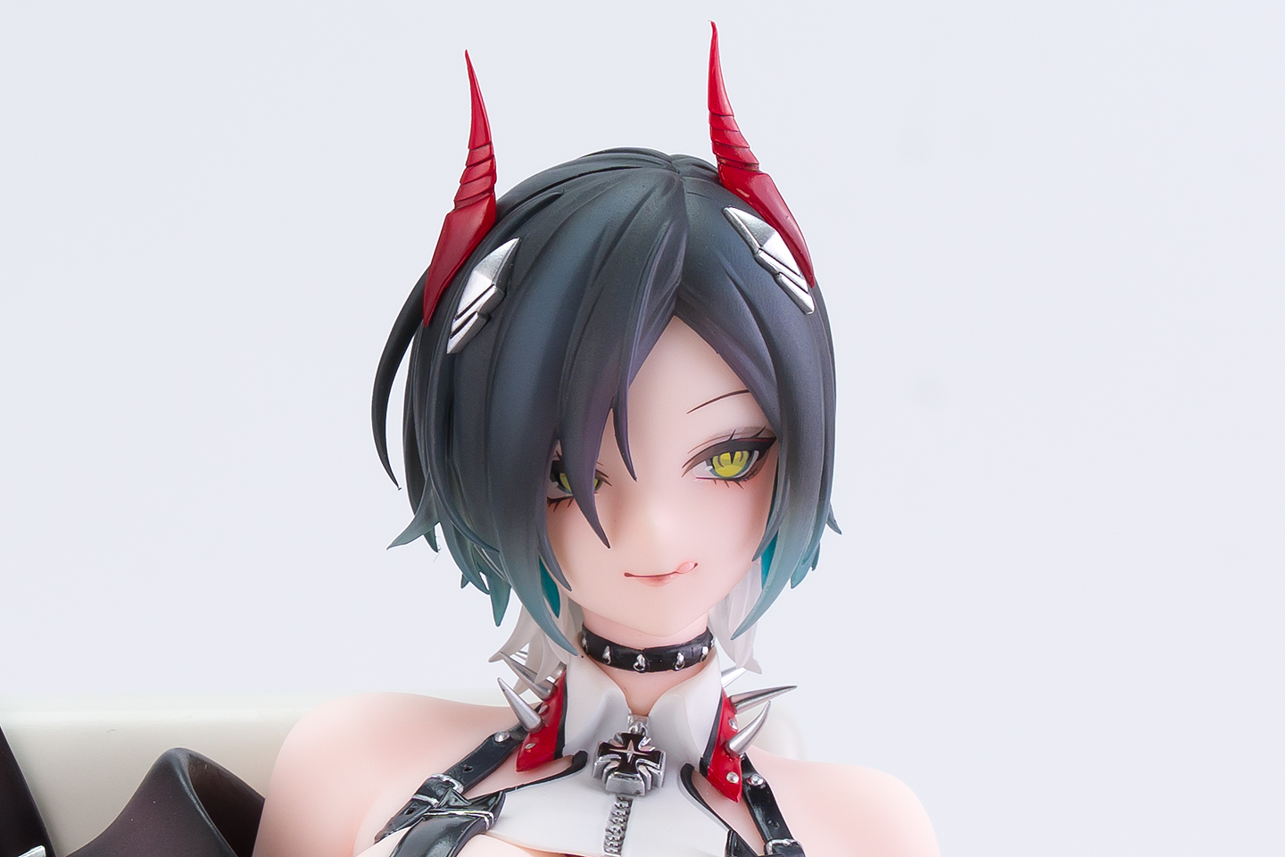 髪の毛はクリアパーツで後ろ髪は2色の多重構造になっており毛先も刺さるほどシャープです。