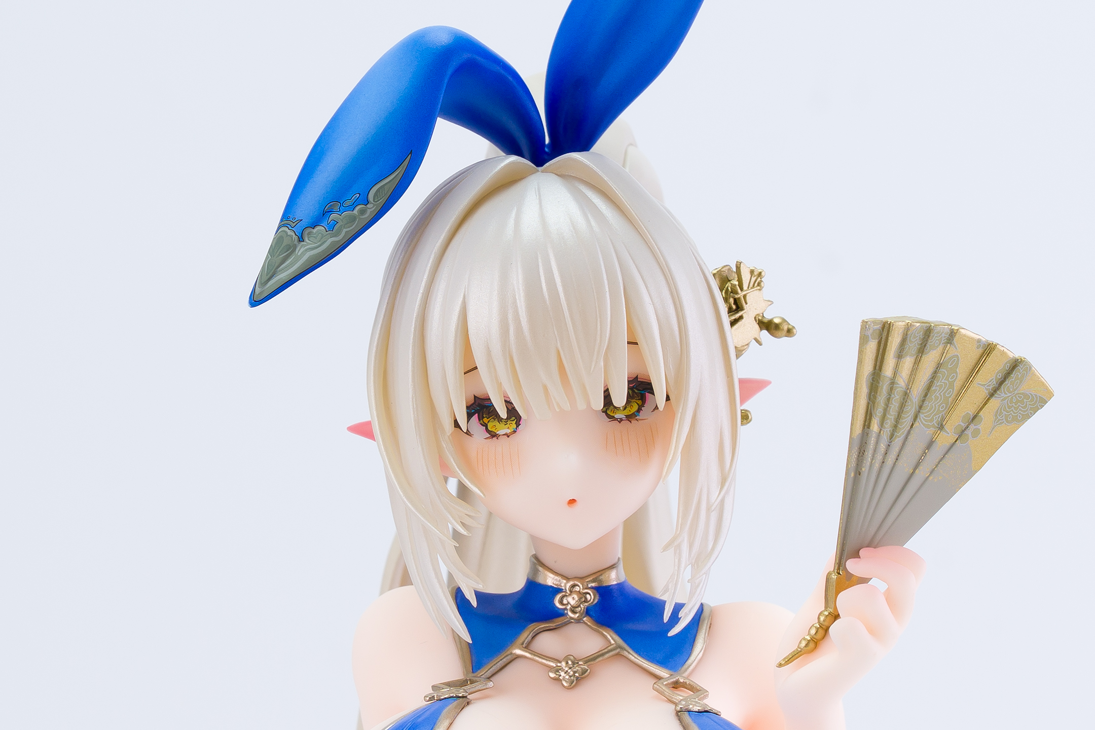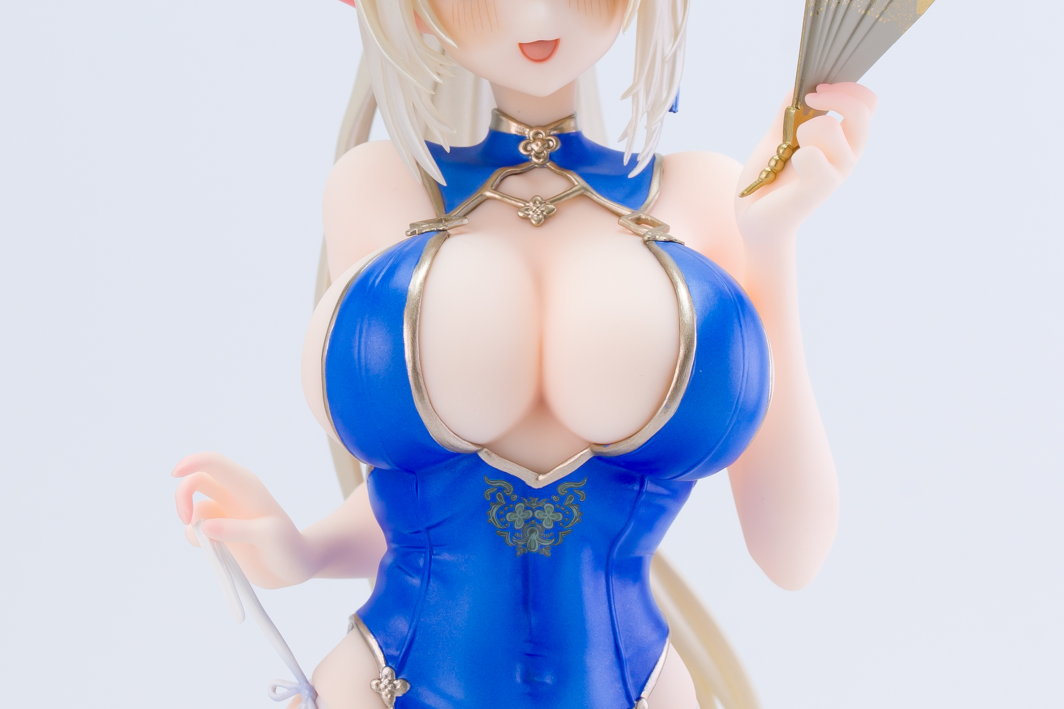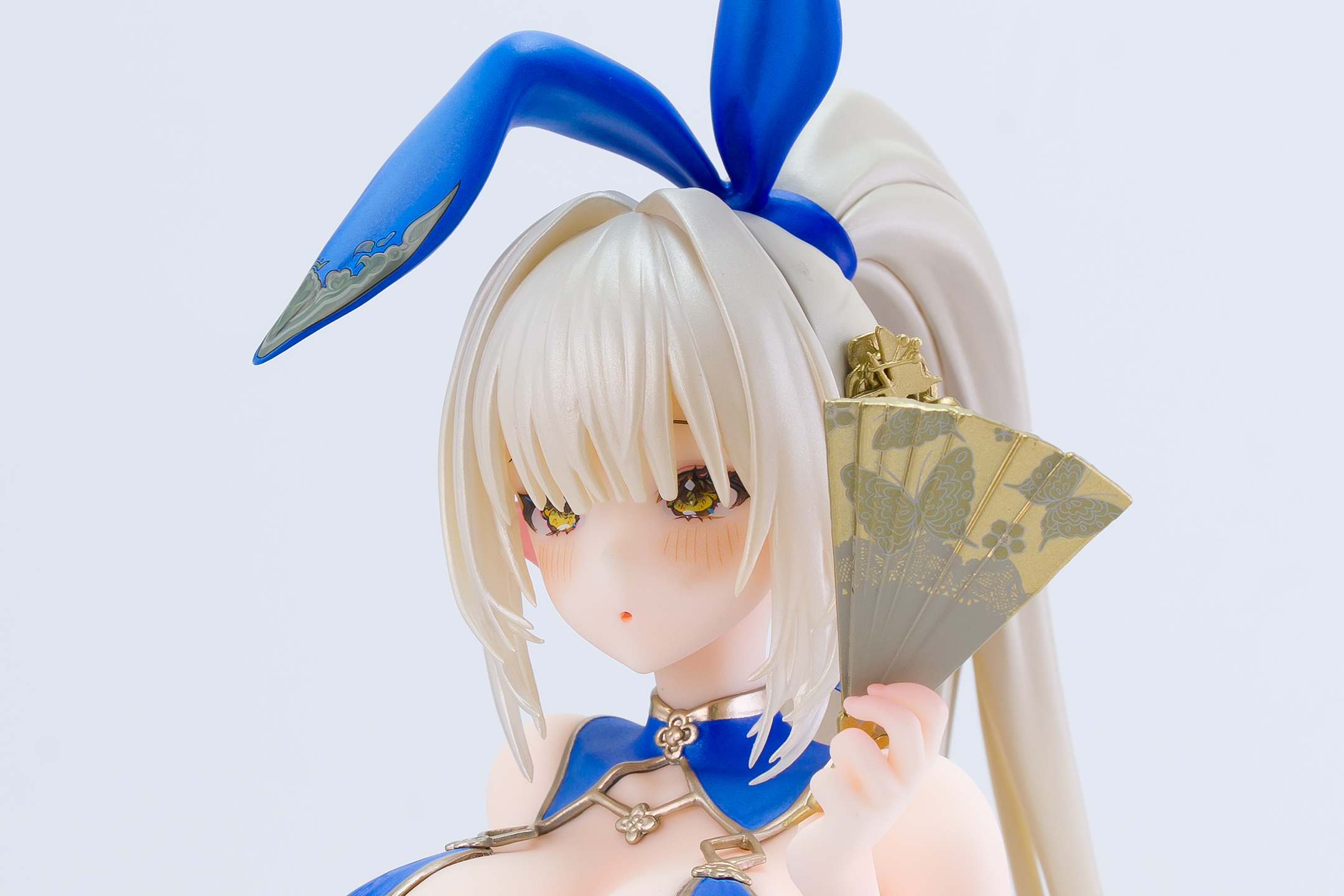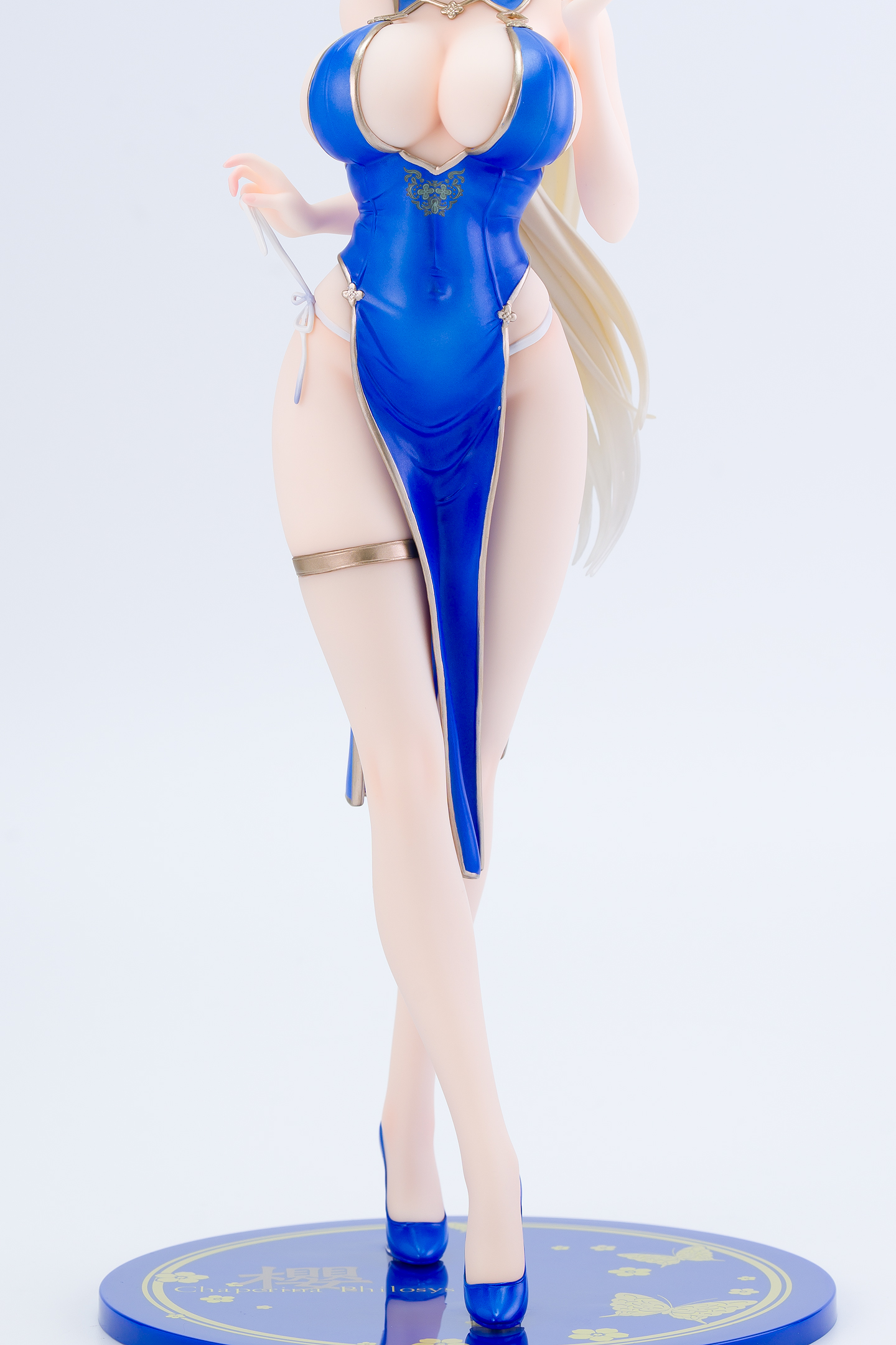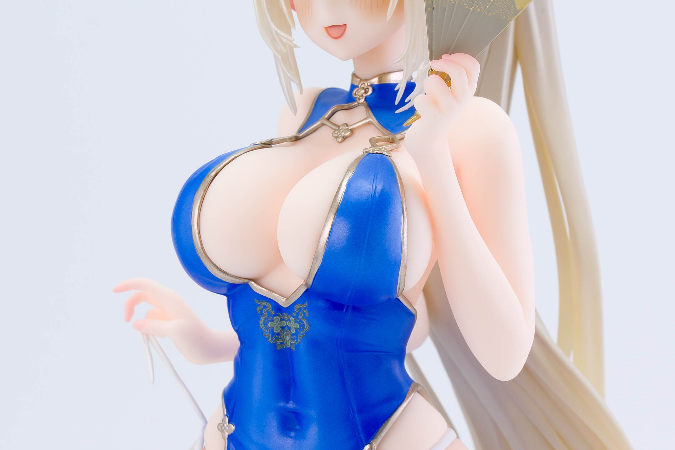 衣装は青いチャイナドレスにゴールドの縁取りでパール塗装も施されています。