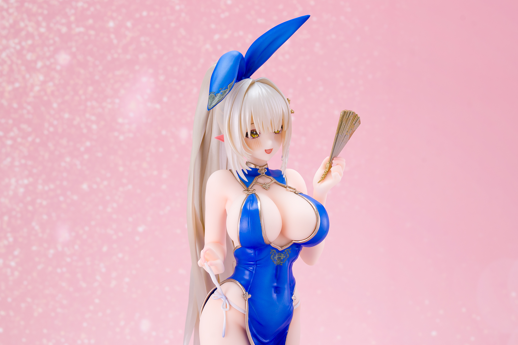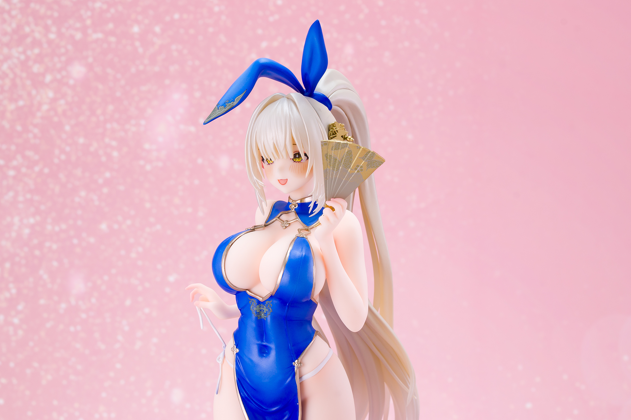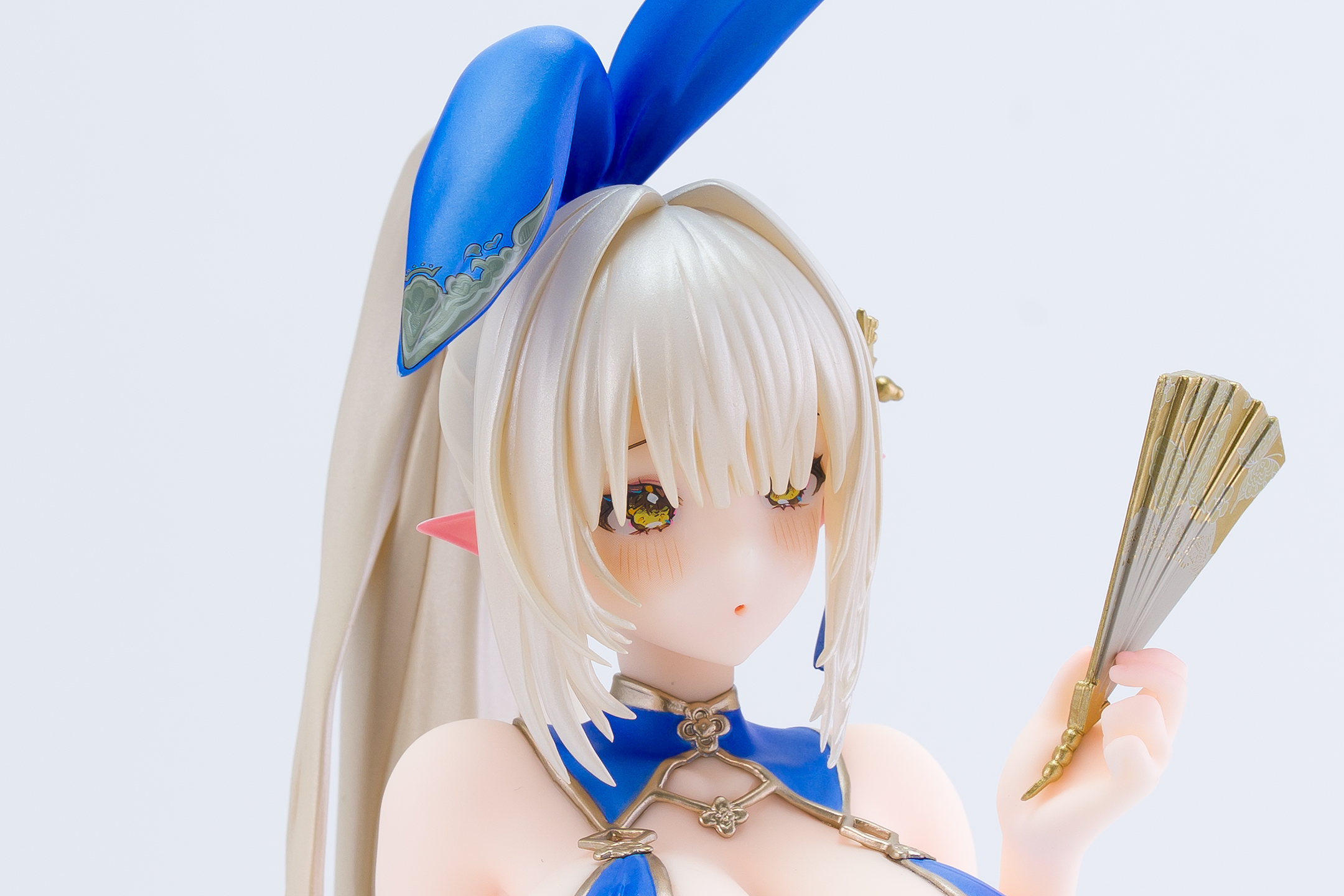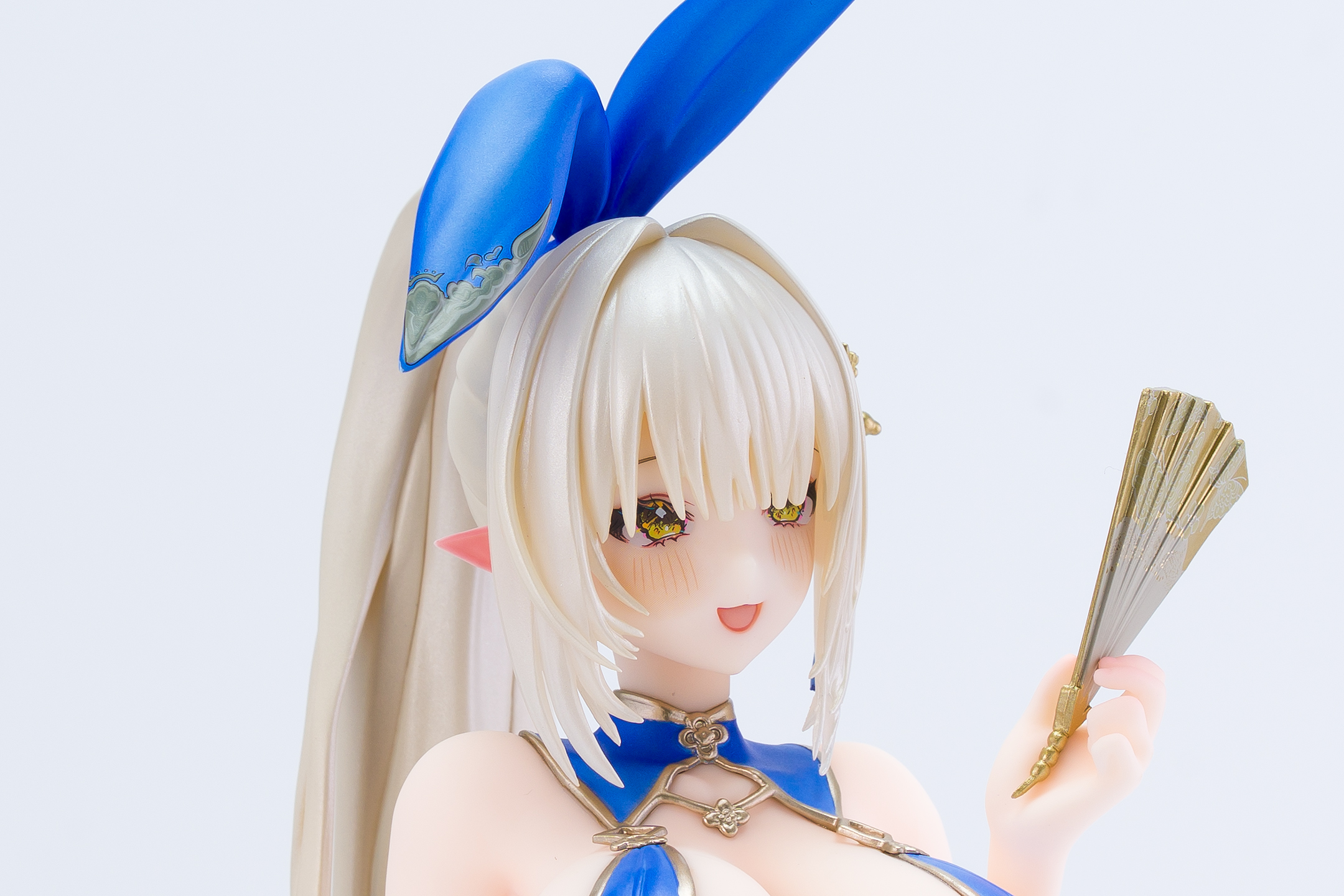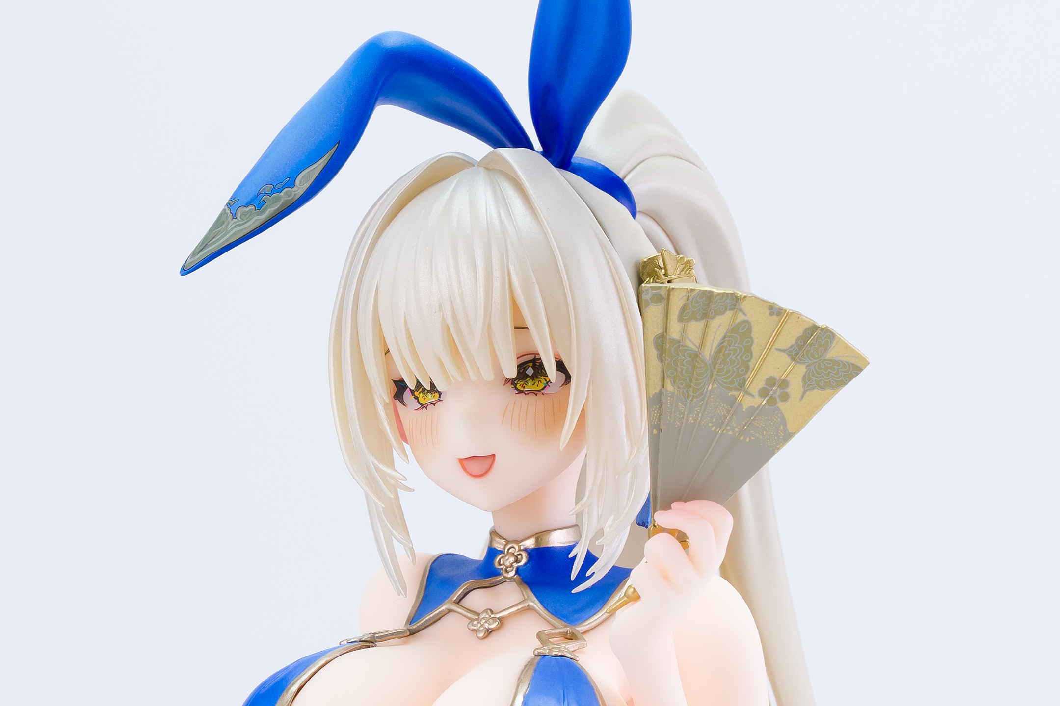 衣装は青いチャイナドレスにゴールドの縁取りでパール塗装も施されています。