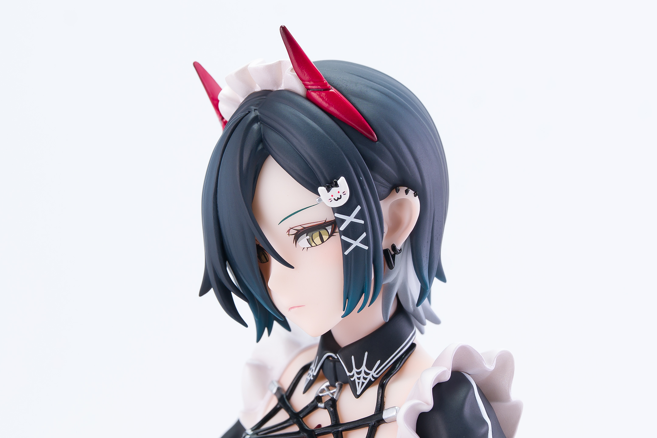 白地のフリルやエプロンはパール塗装、ブーツやベルト類はエナメル質感の光沢塗装です。