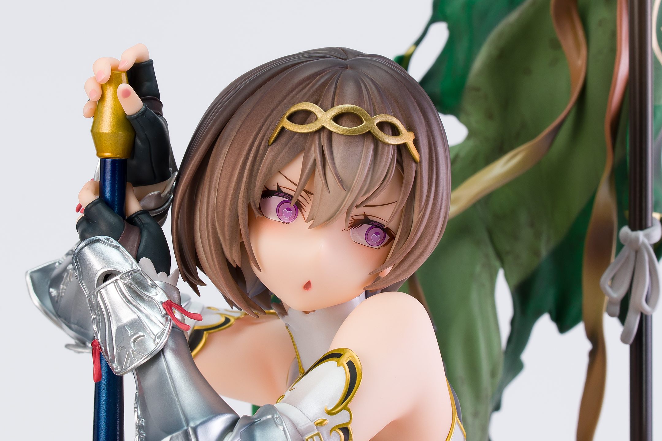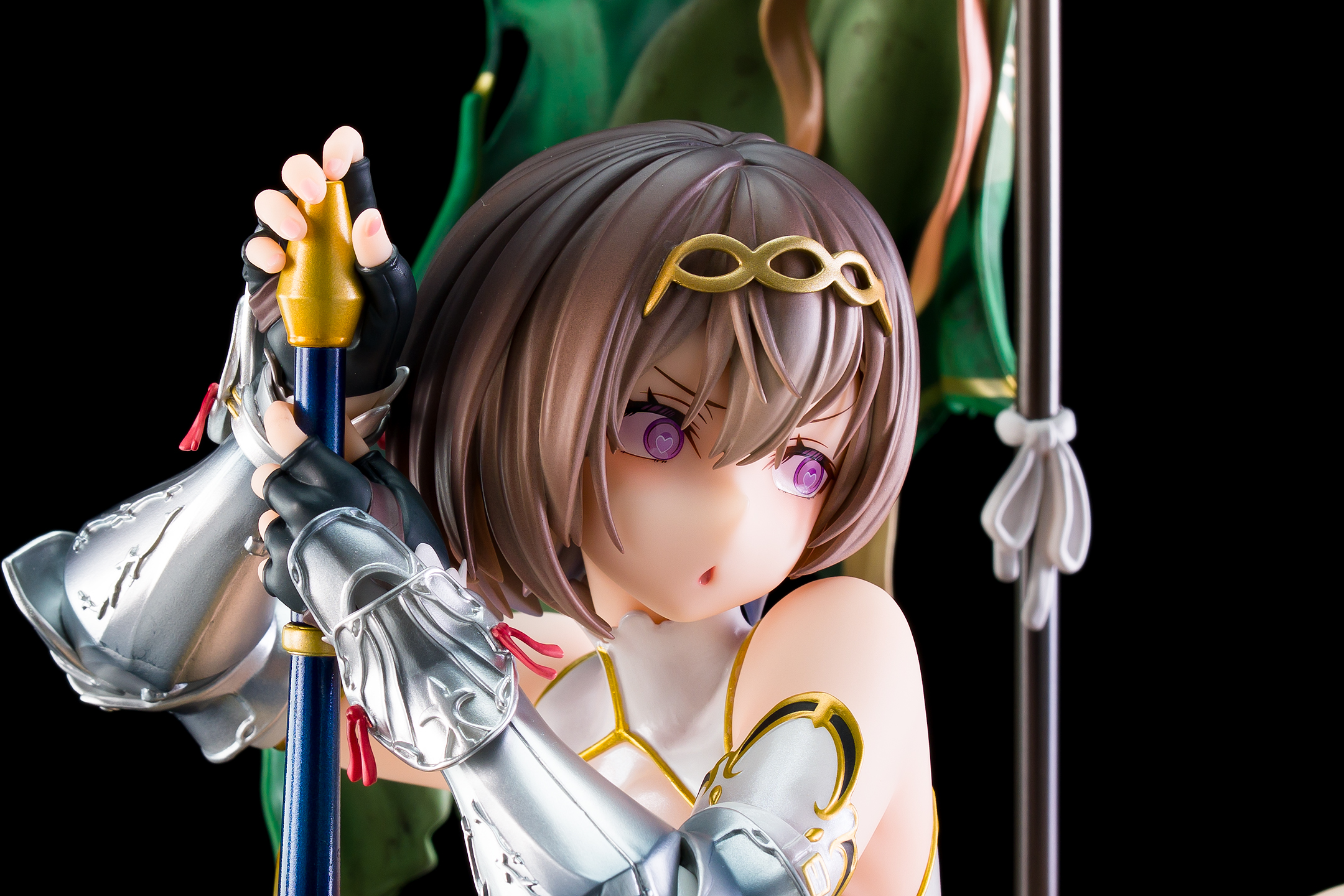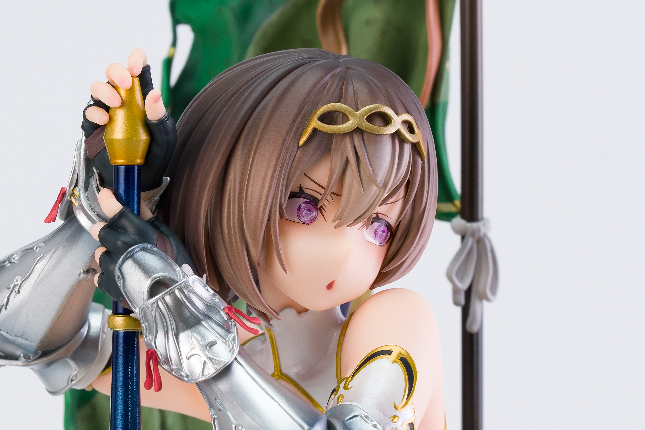 衣装は甲冑のシルバーの塗装、白い部分はパール塗装&ゴールドの縁取りと全体の質感が高いです。