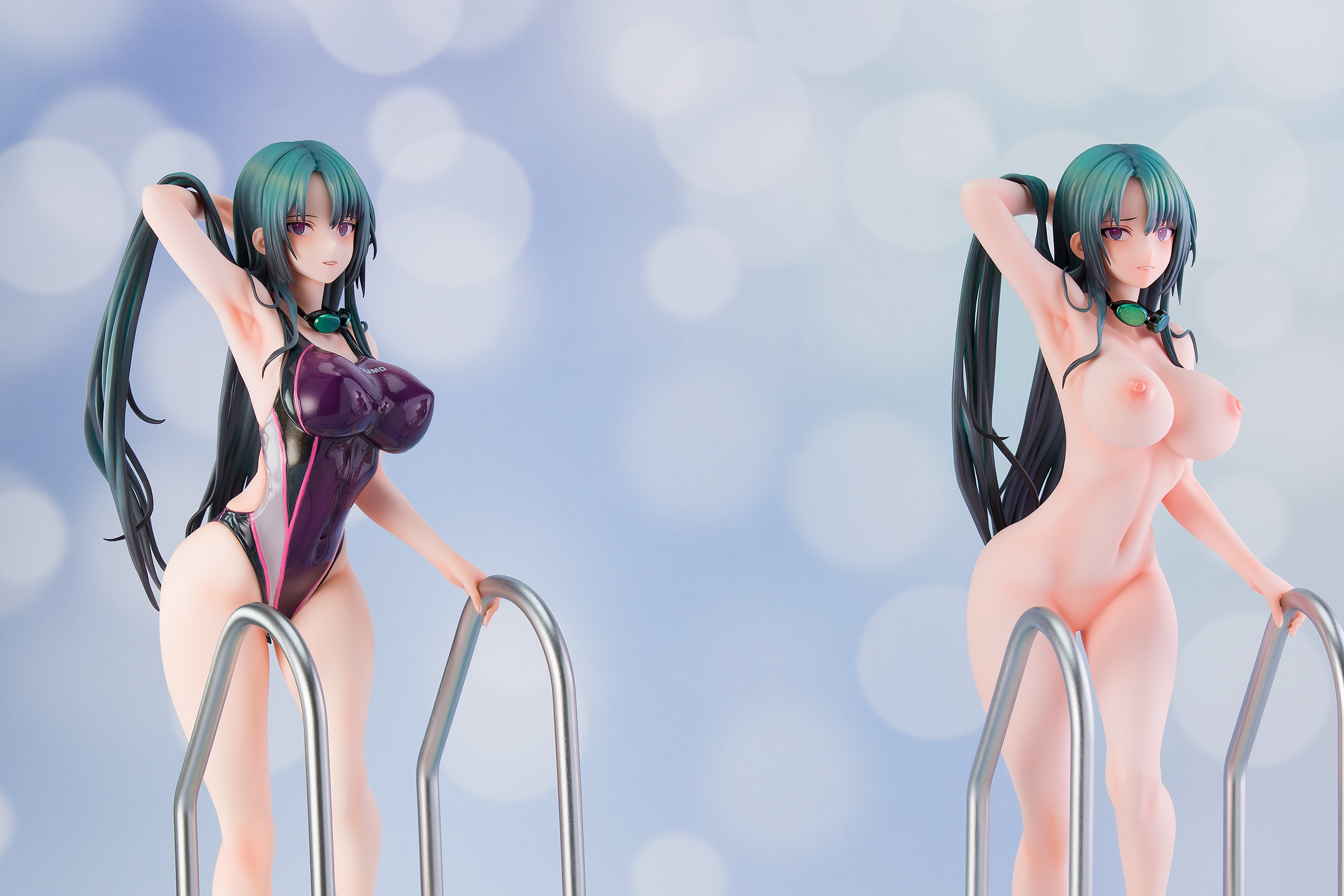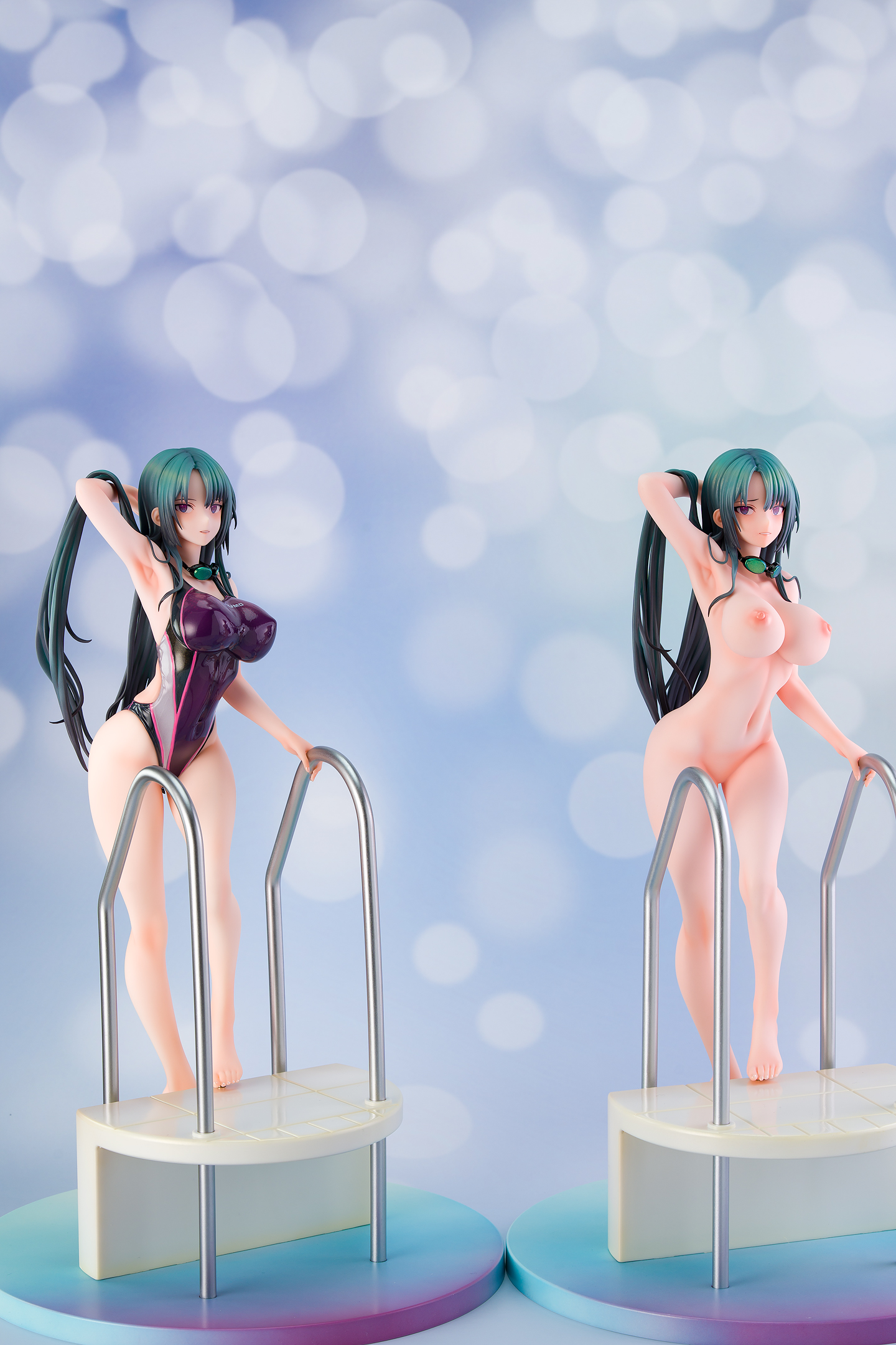 水着姿とヌードバージョンの本体ボディ2体に、手すりまで付いた大型の台座も2個入っています。