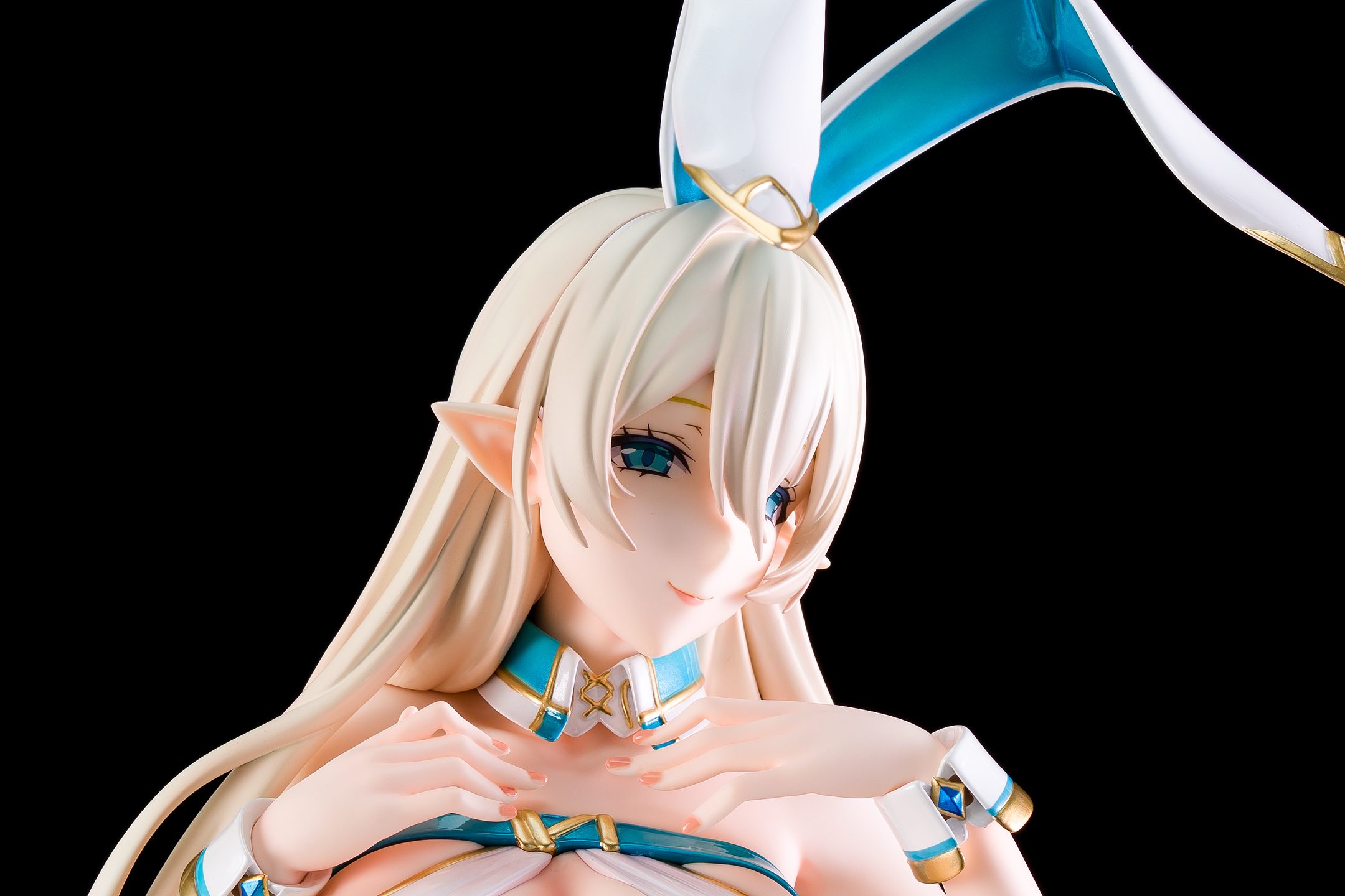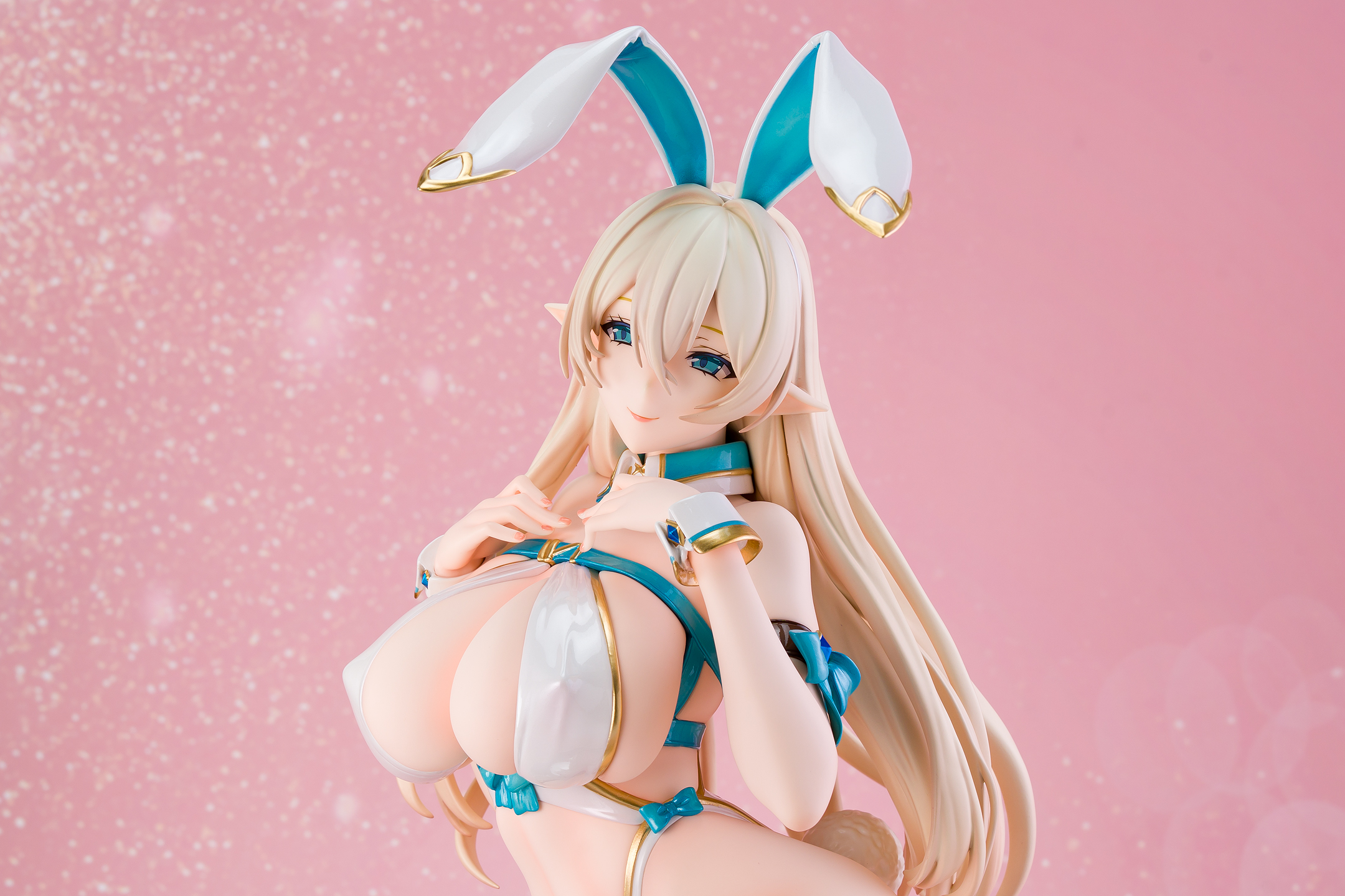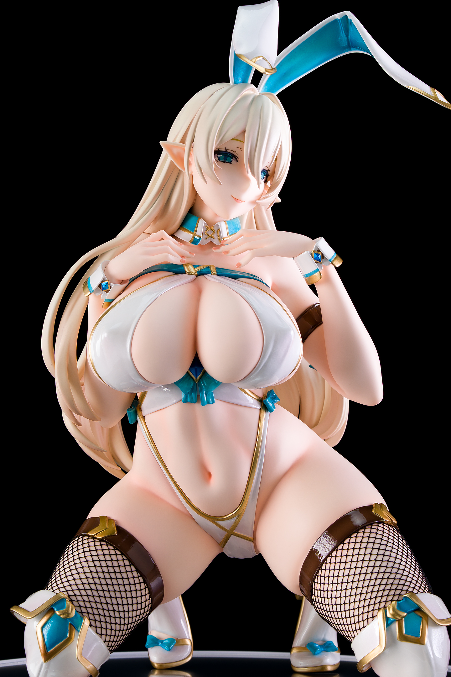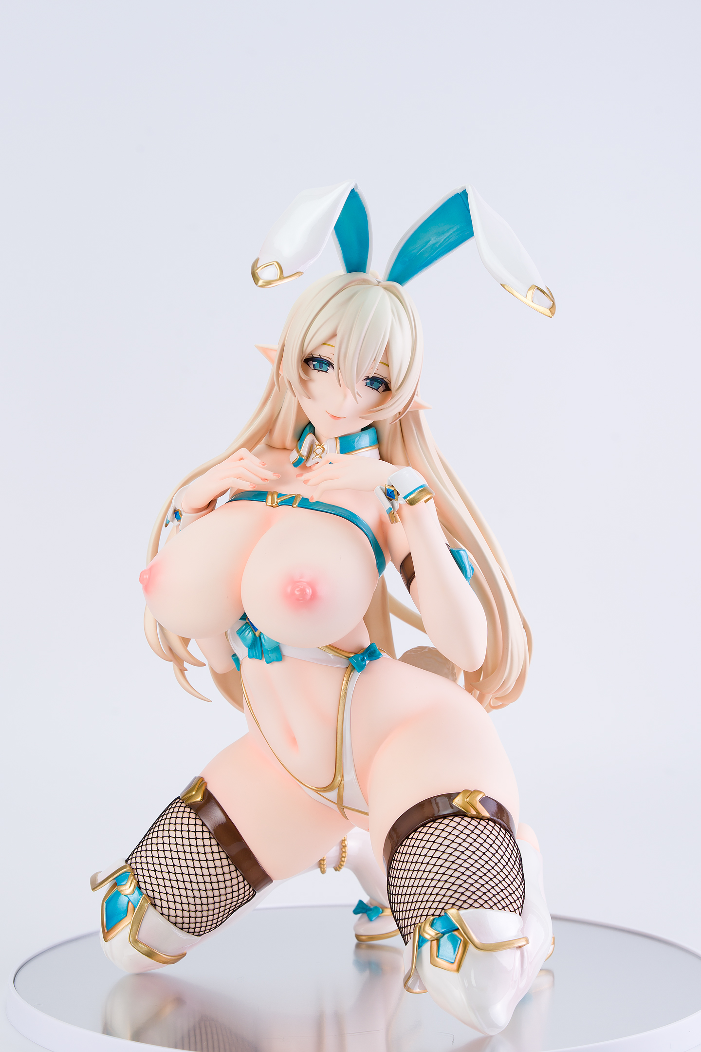 白いバニースーツのエルフさんです。
