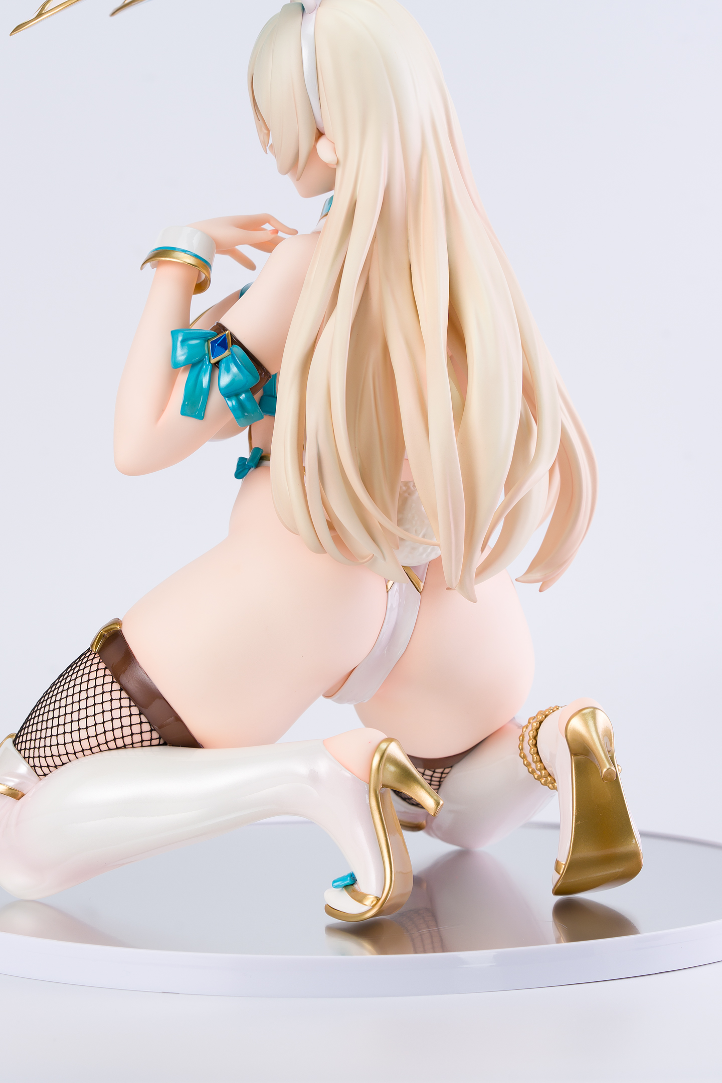バニースーツはホワイトを基調としてゴールドの縁取りやエメラルドグリーンが映えます。