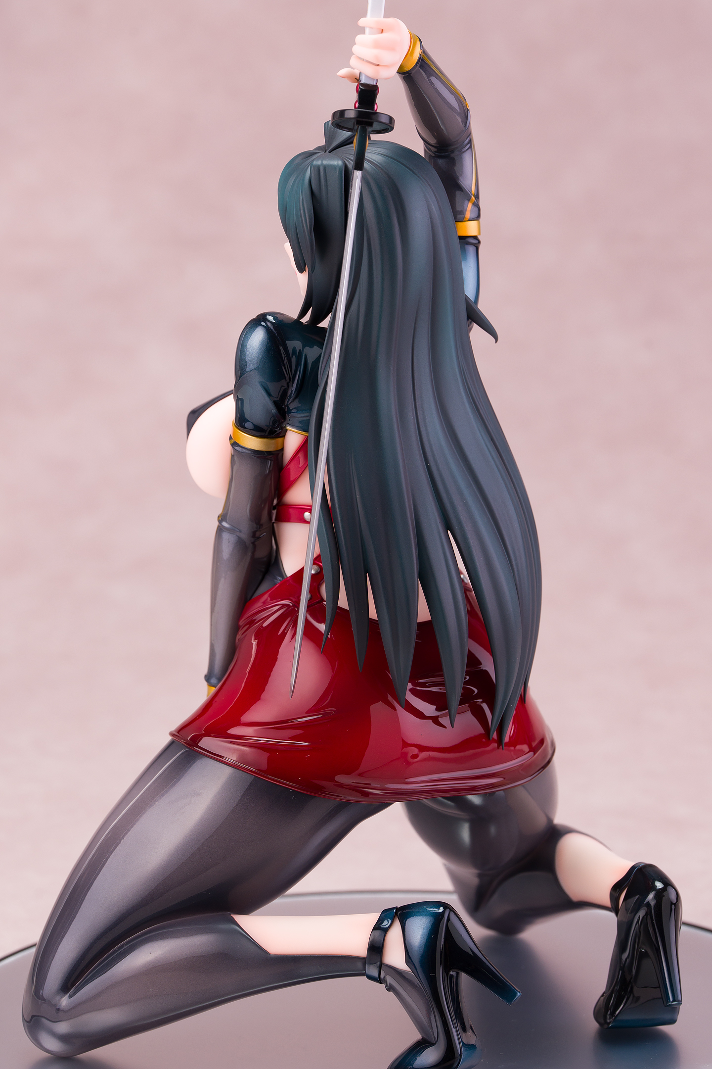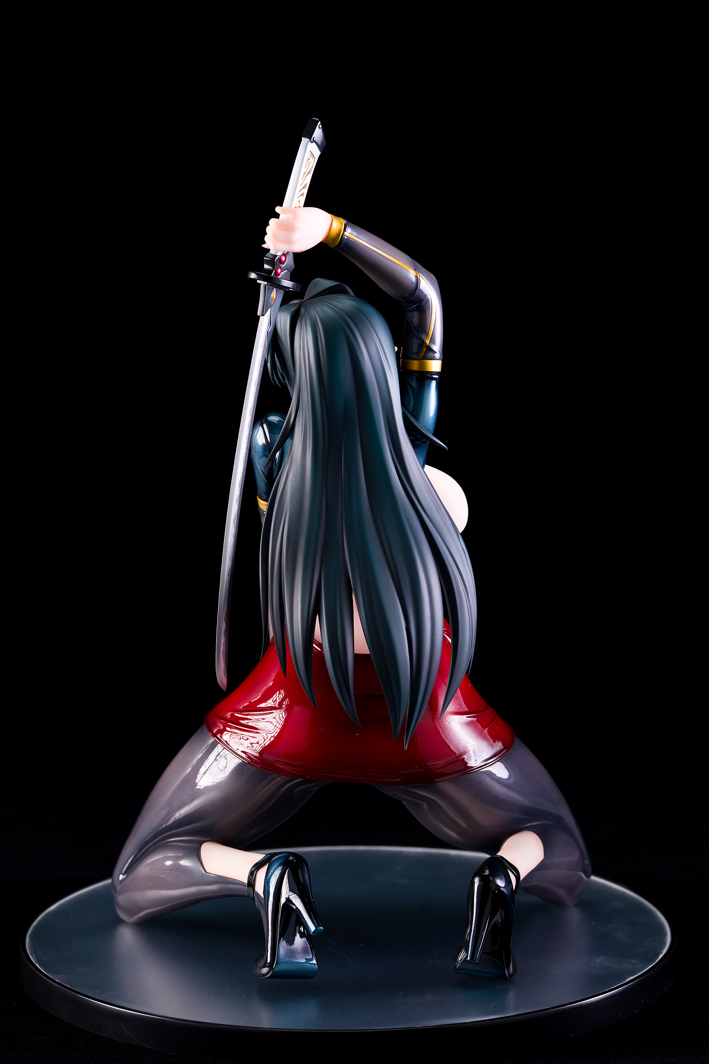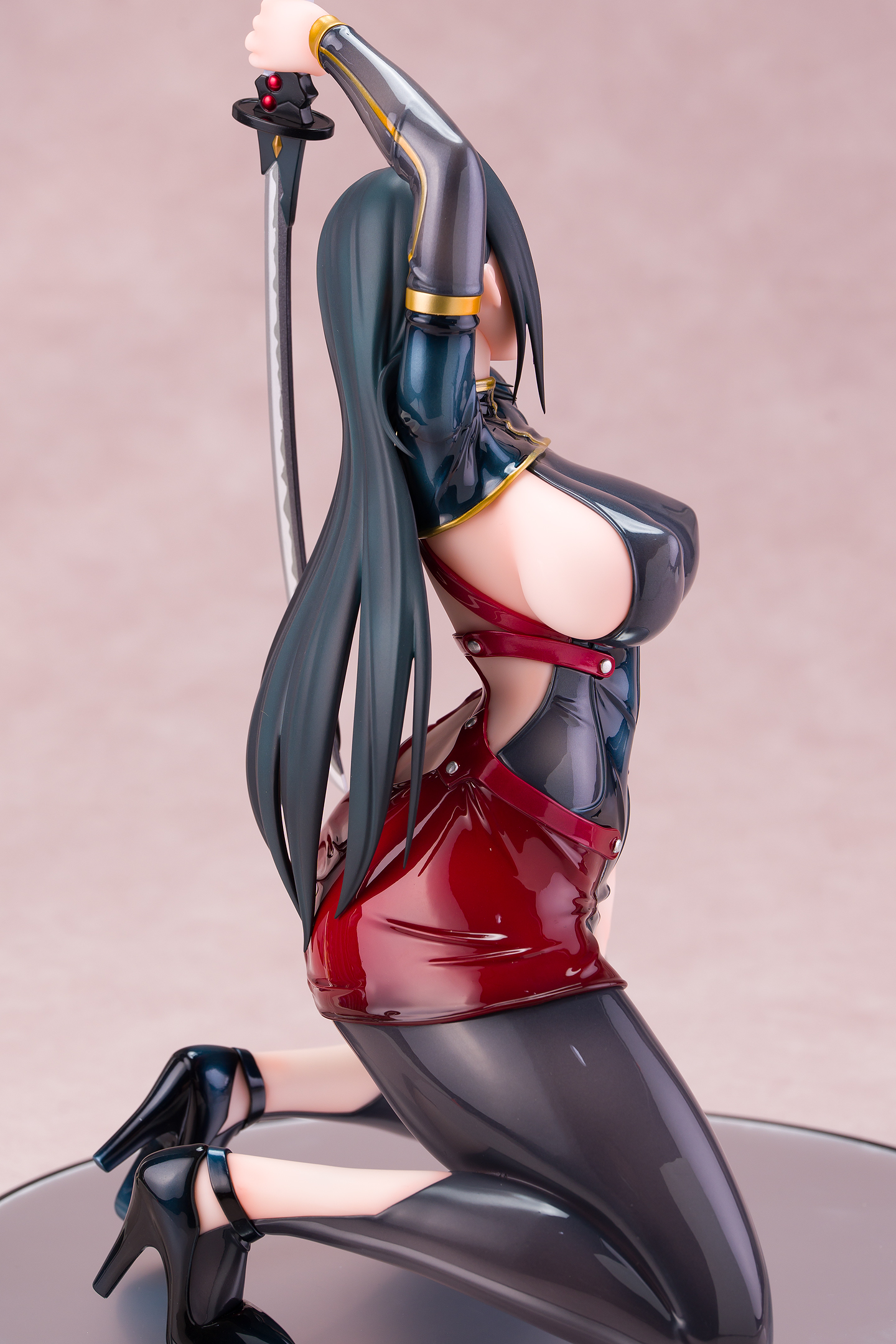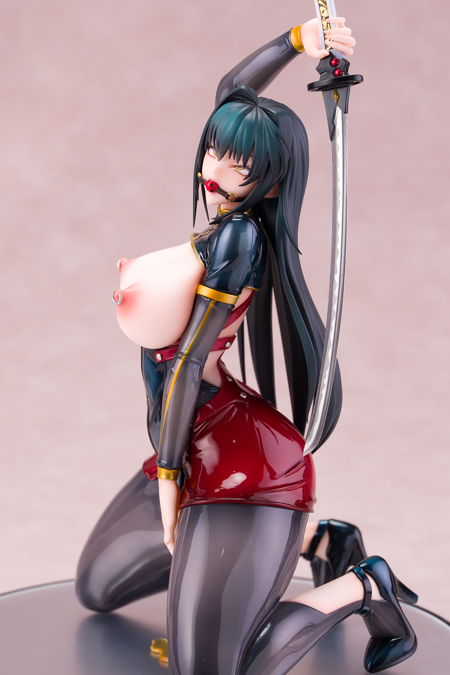 ・台座はミラー仕様。本体は自由設置で台座無しで自立も可能。刀は接着済み。