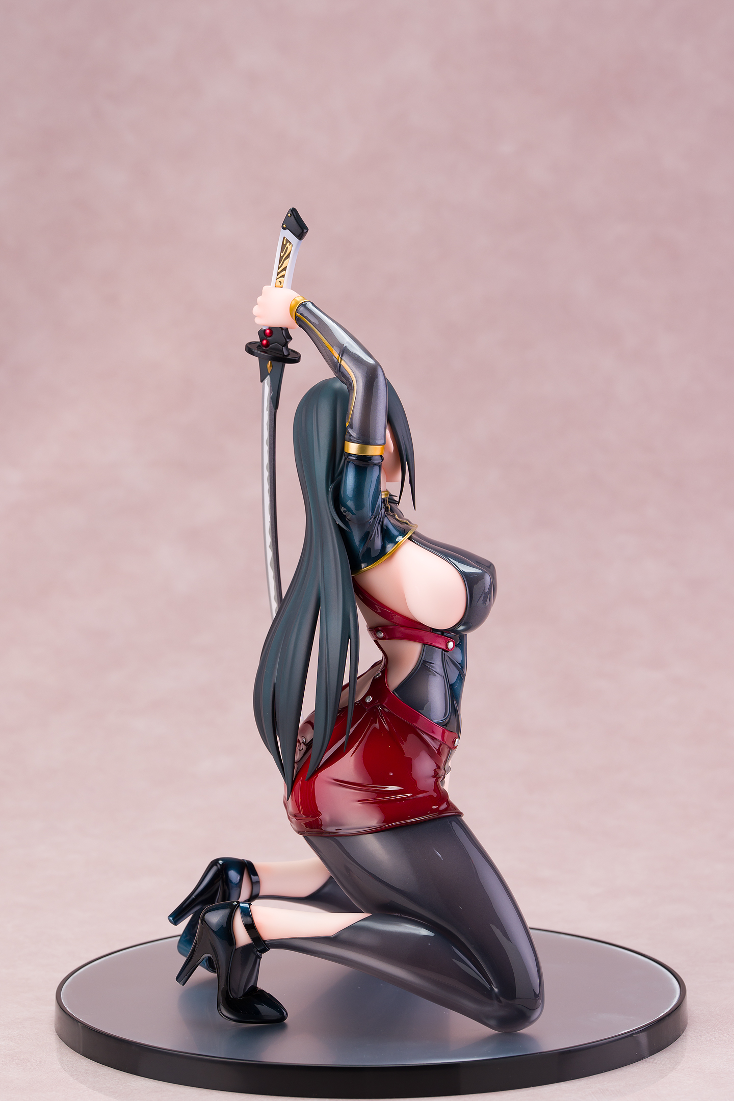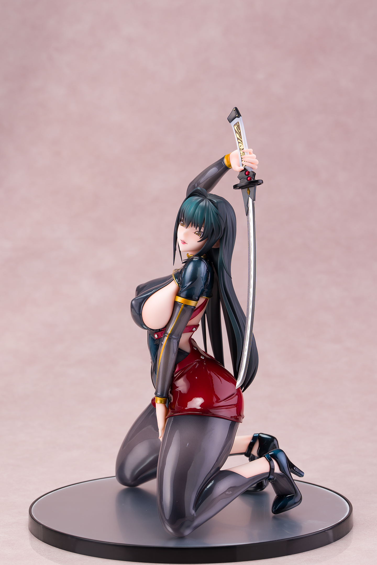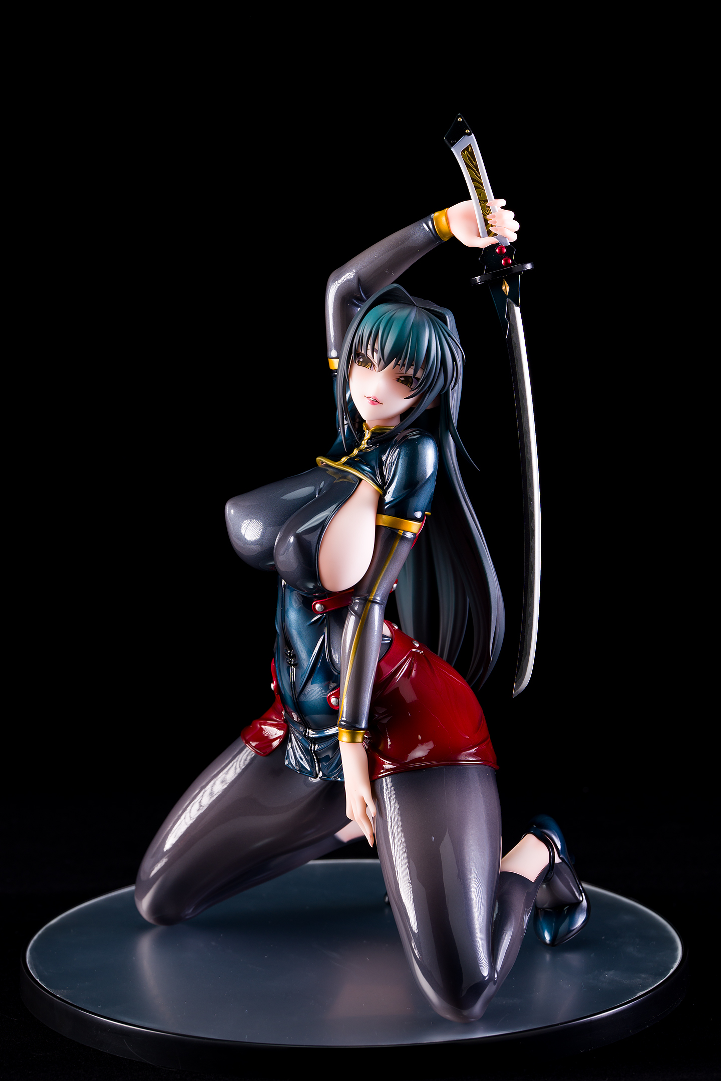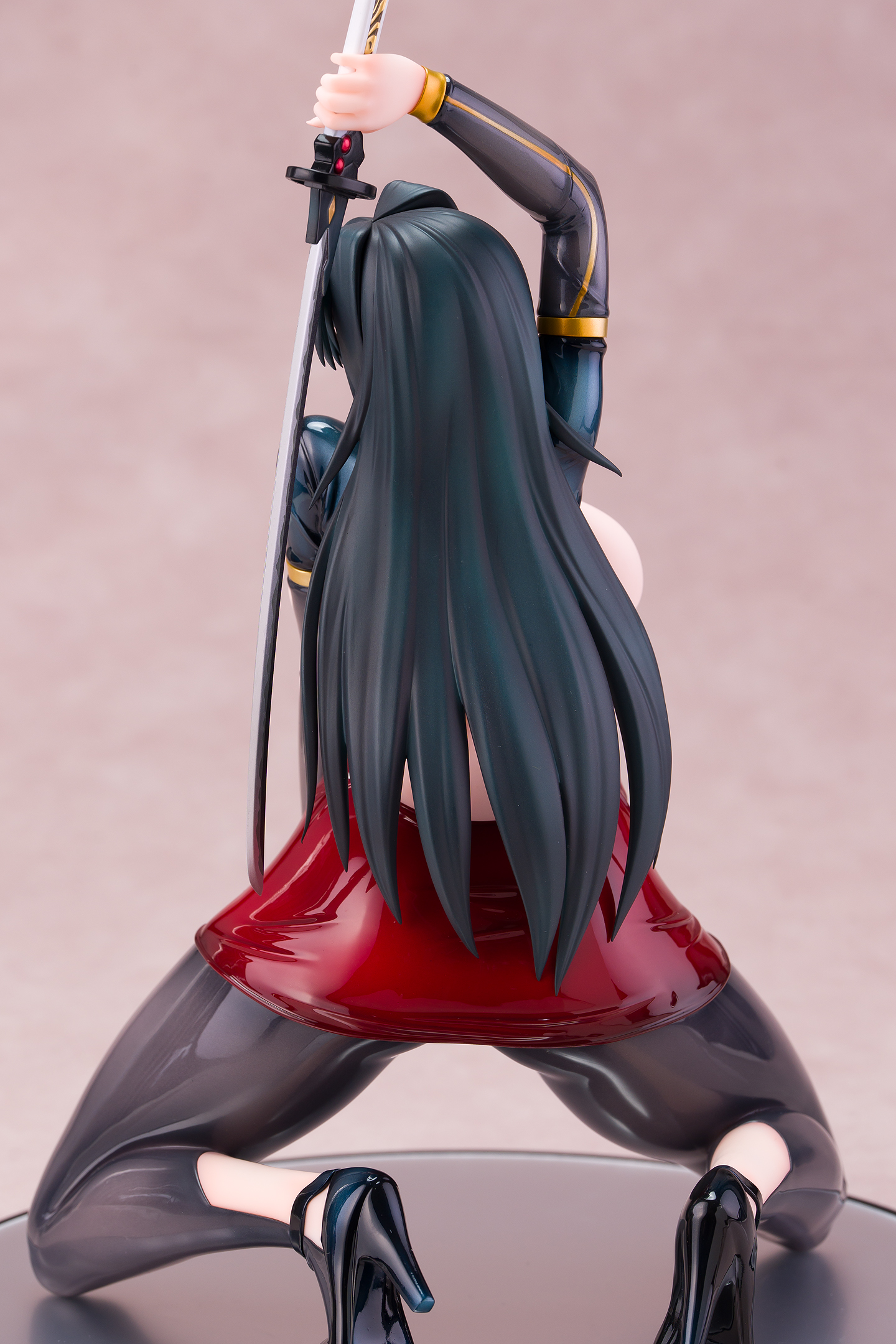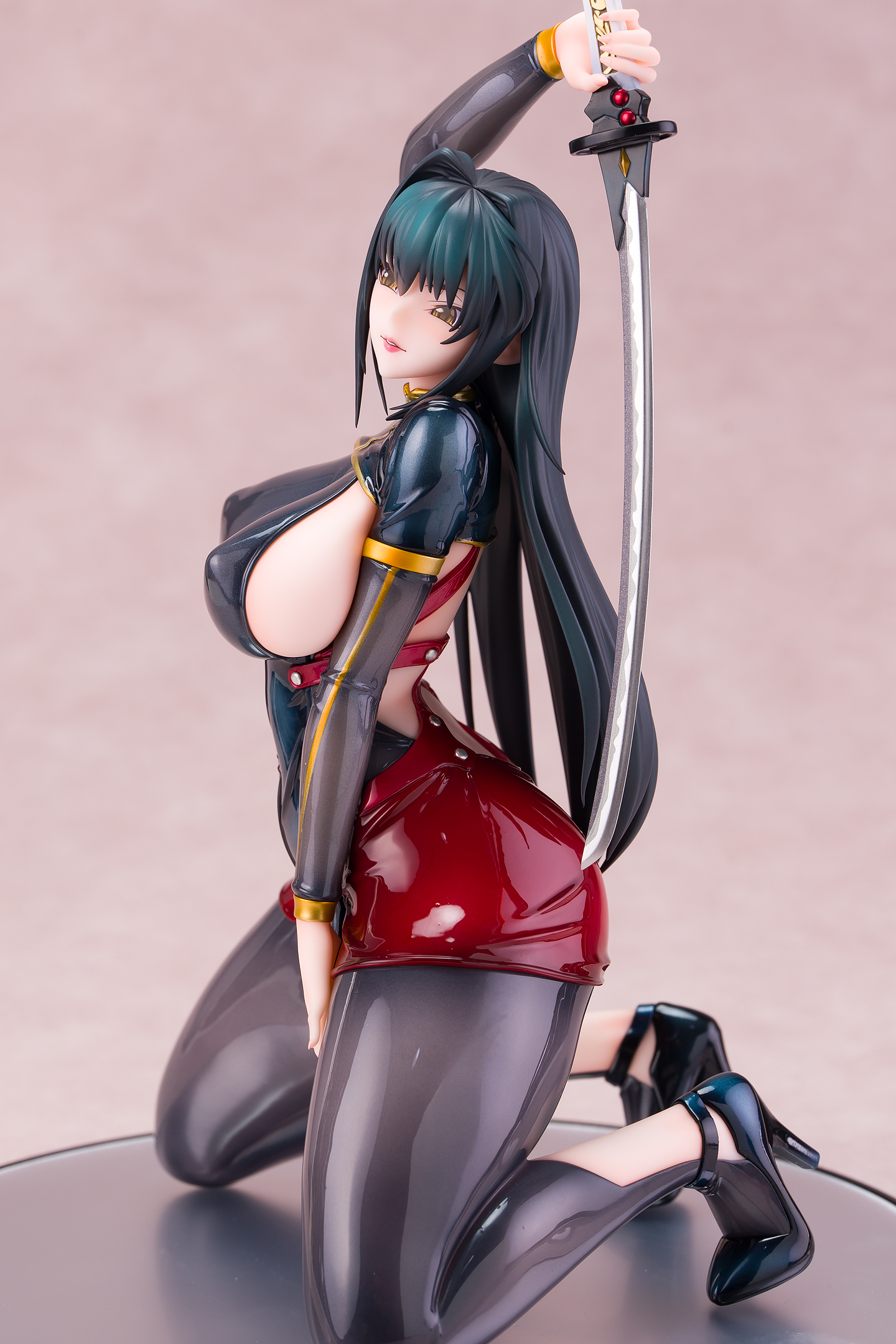 ・台座はミラー仕様。本体は自由設置で台座無しで自立も可能。刀は接着済み。