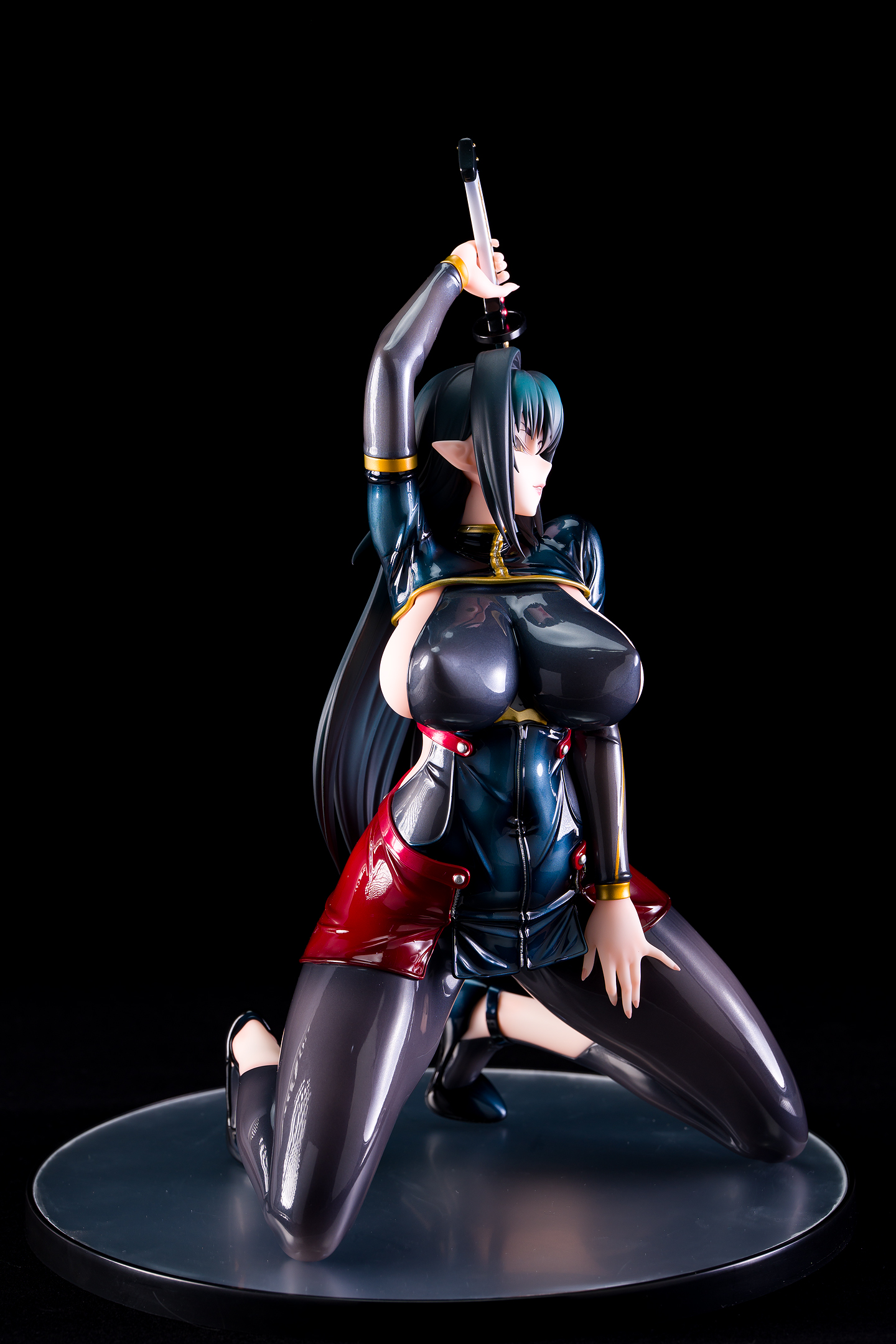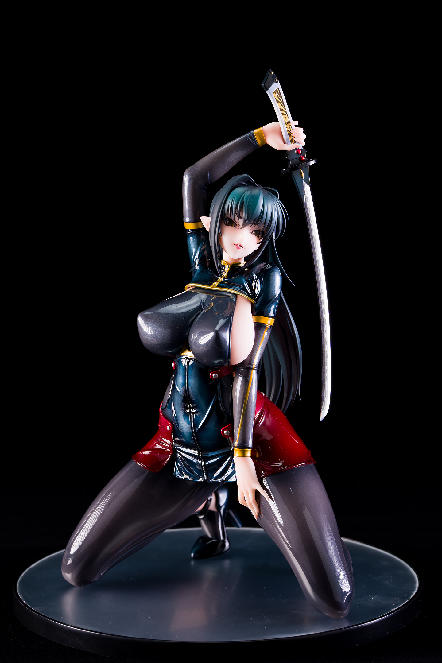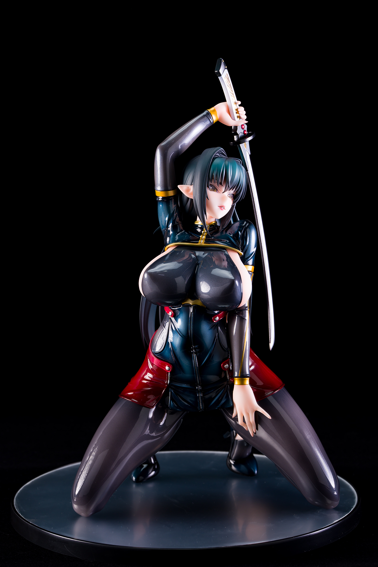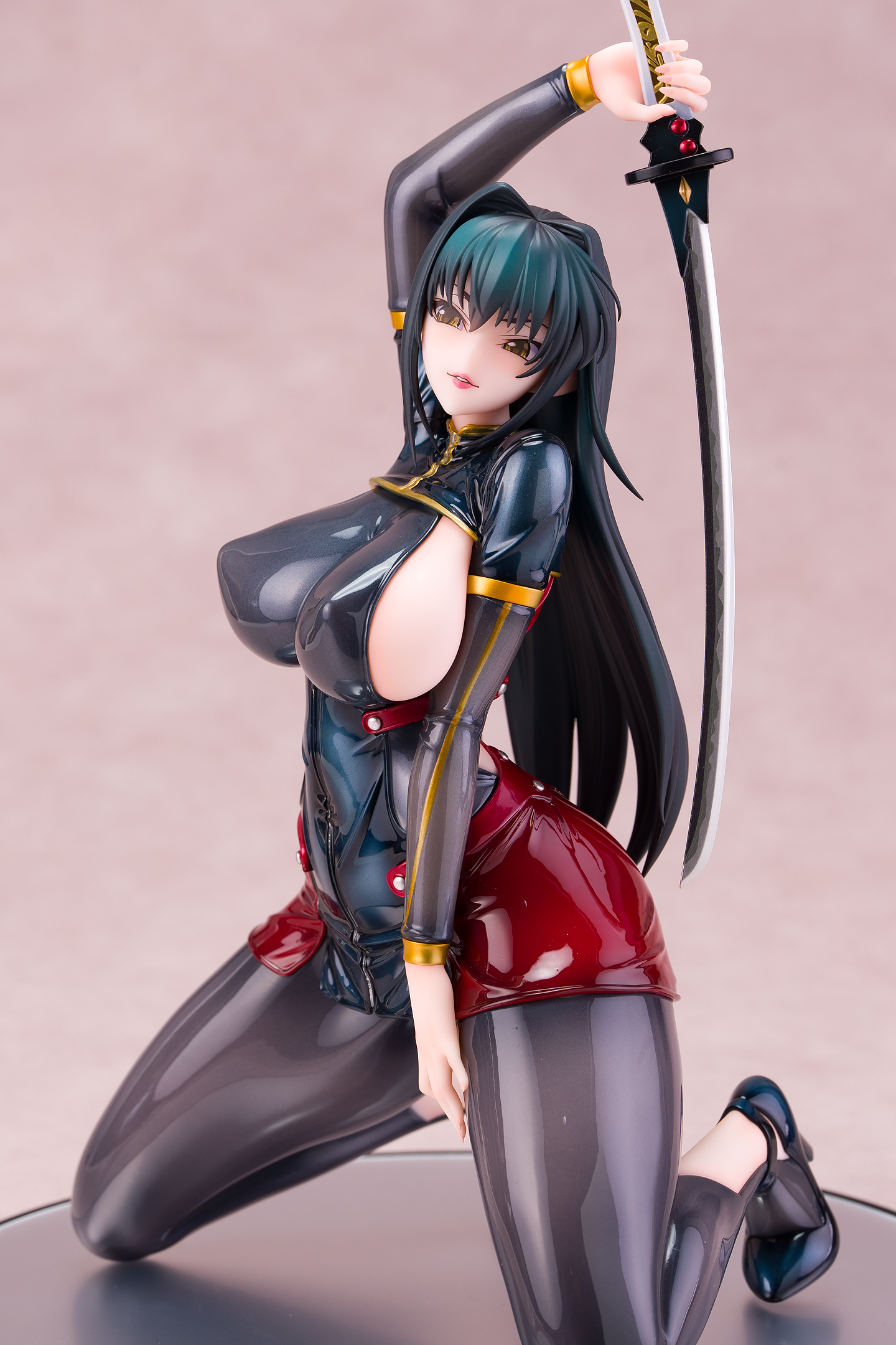 ・台座はミラー仕様。本体は自由設置で台座無しで自立も可能。刀は接着済み。
