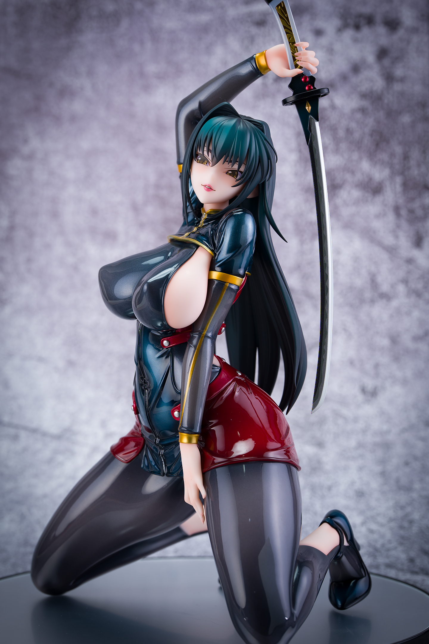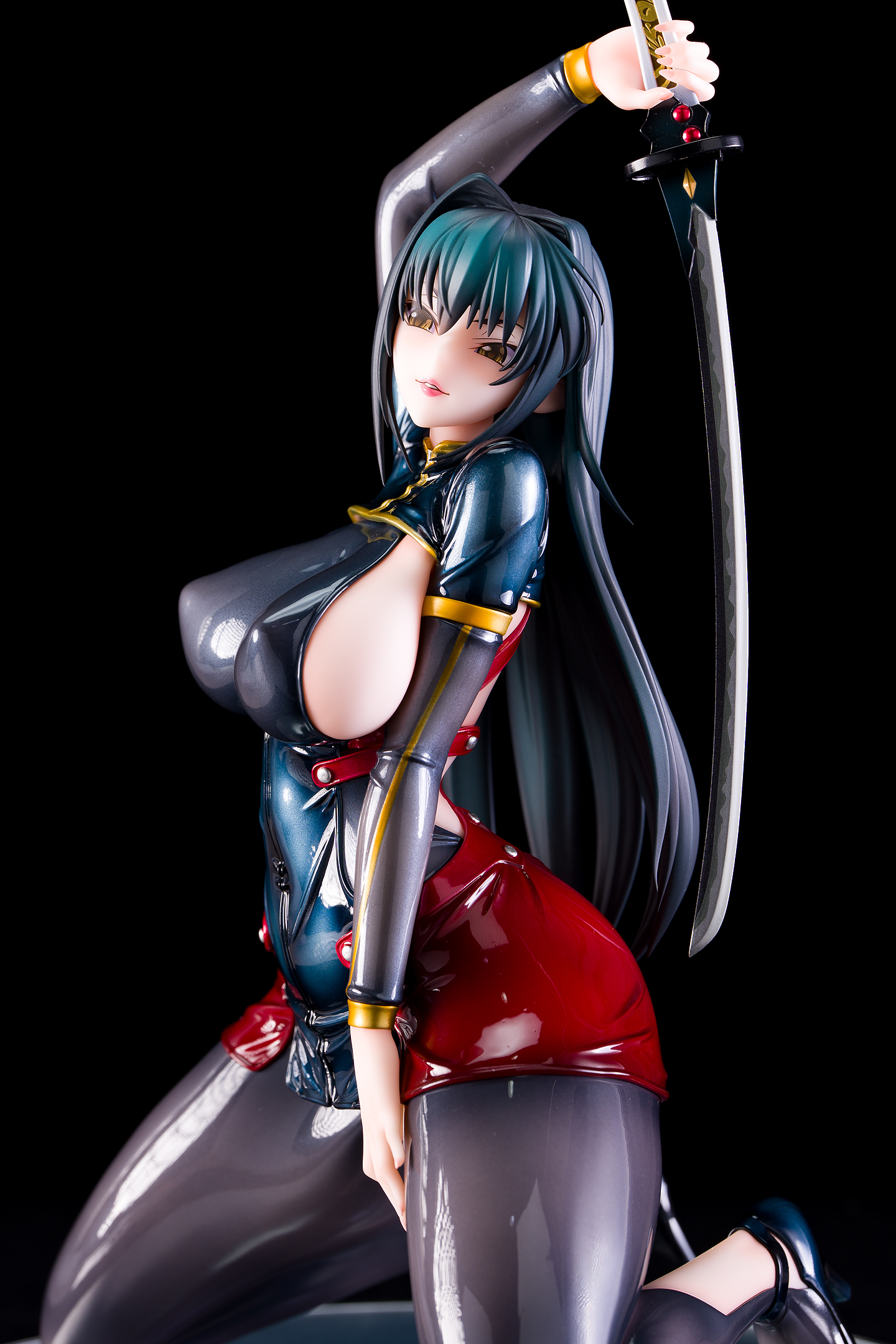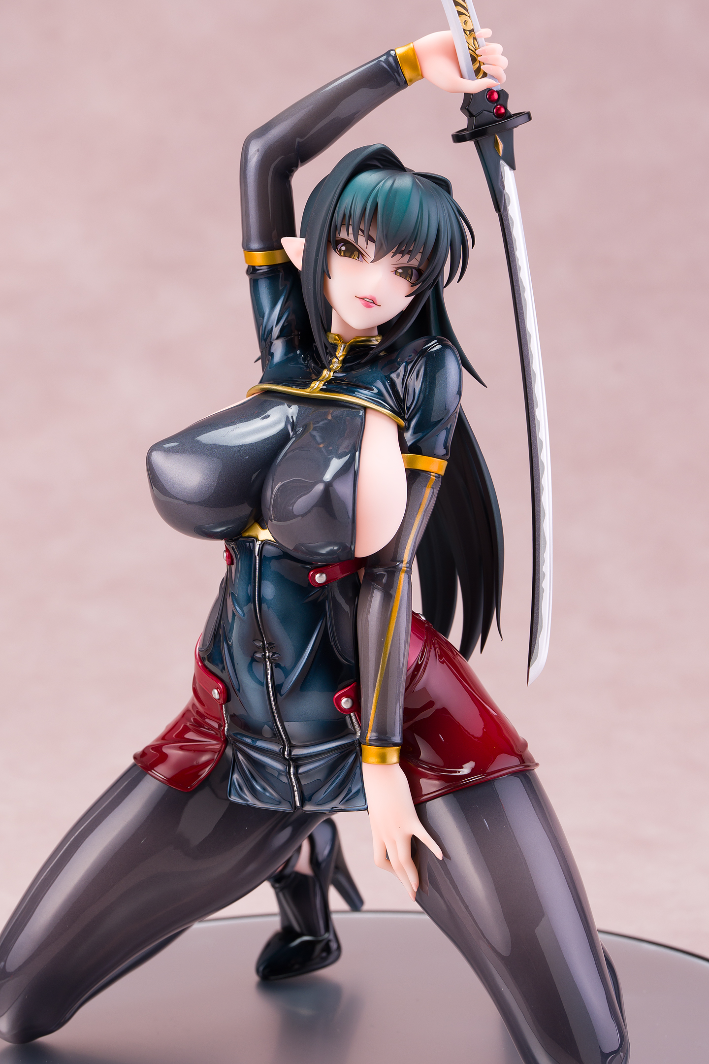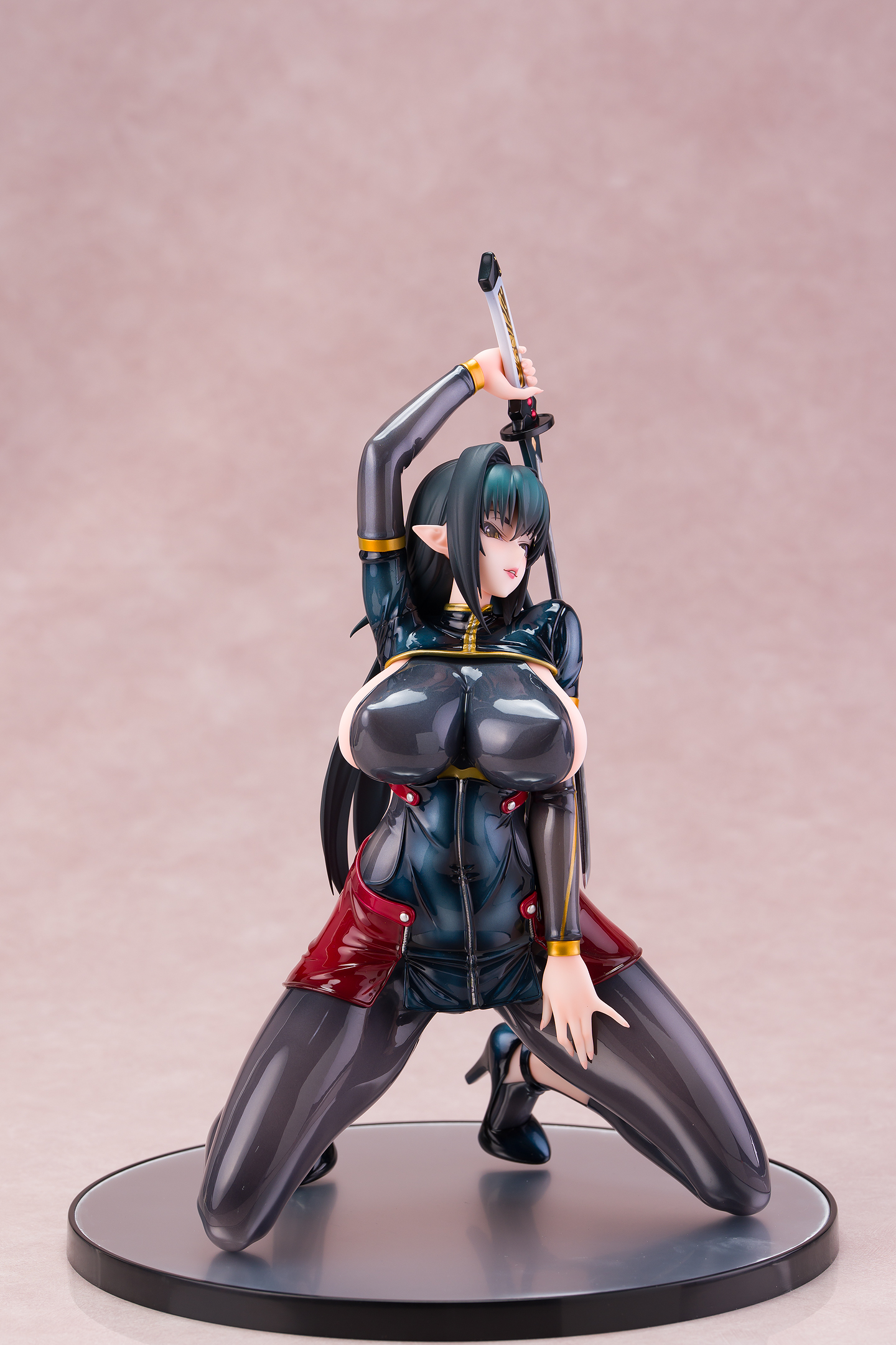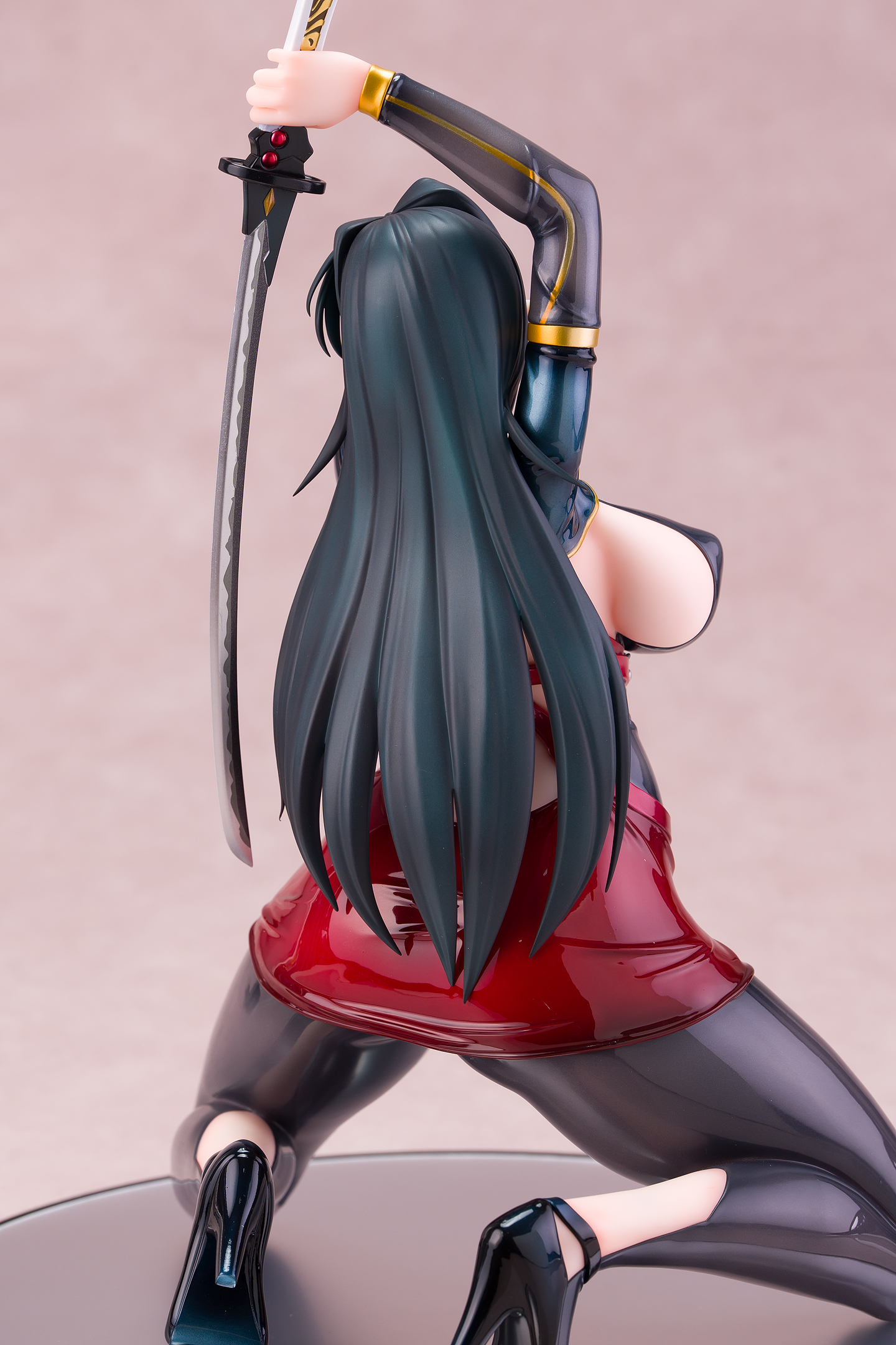 ・台座はミラー仕様。本体は自由設置で台座無しで自立も可能。刀は接着済み。