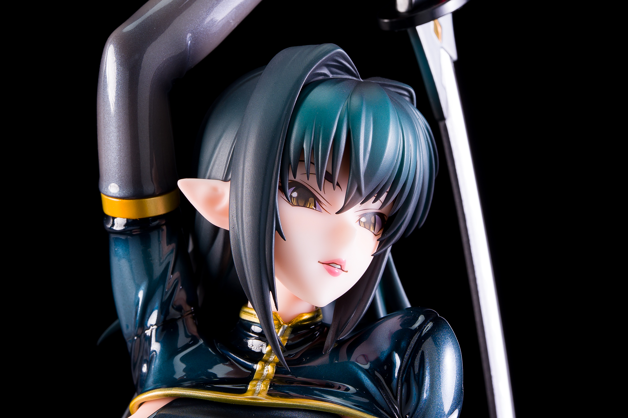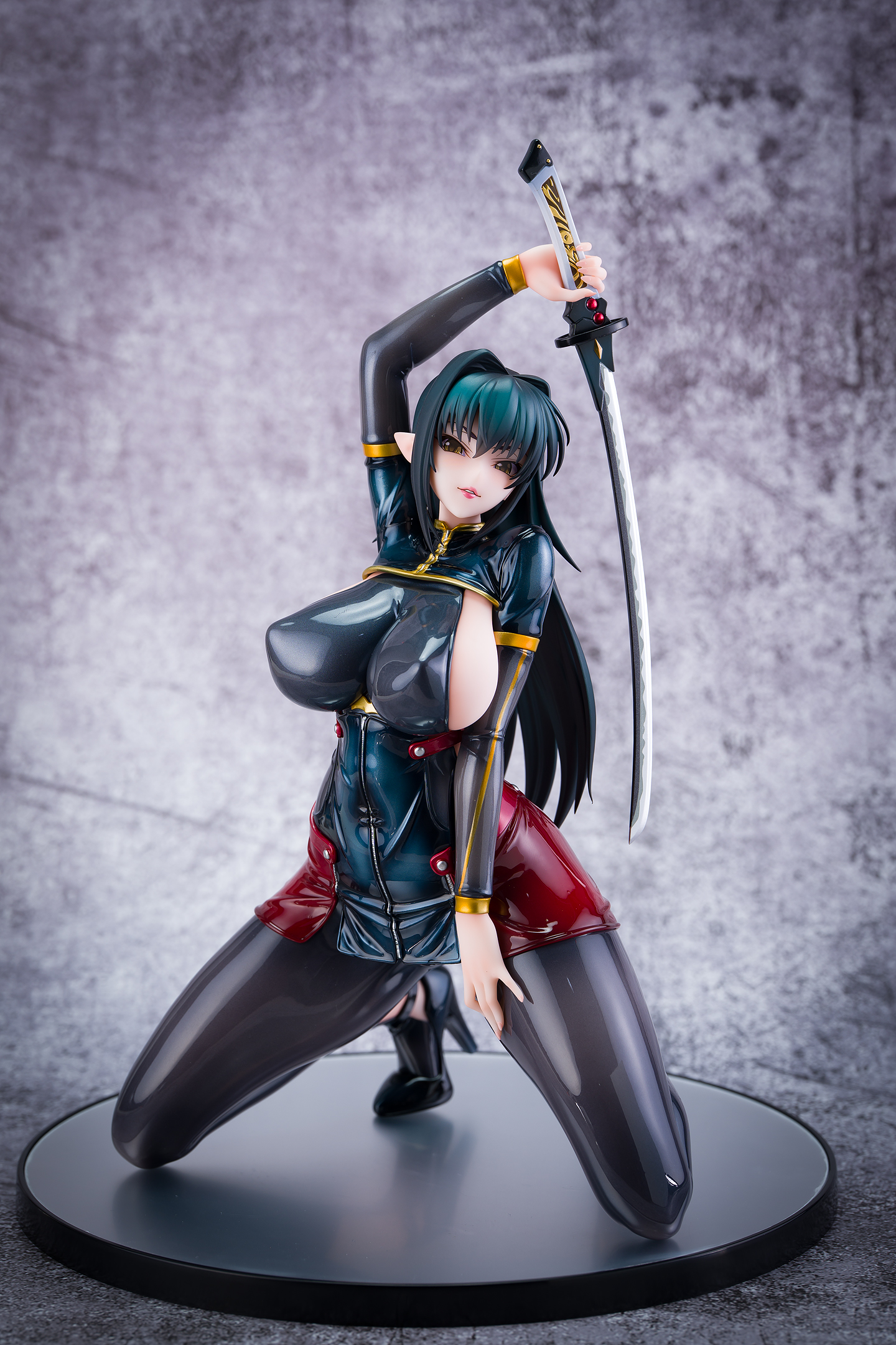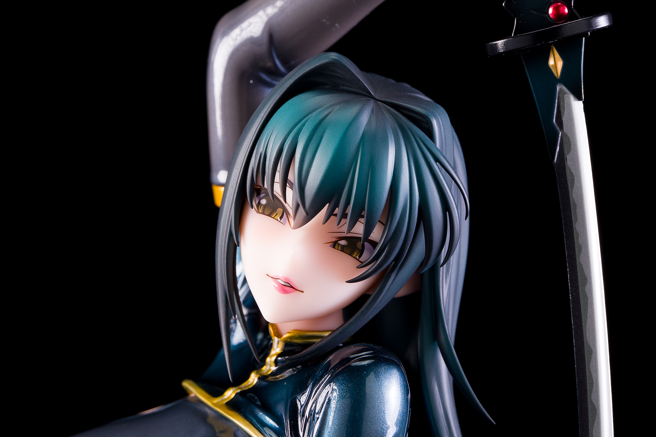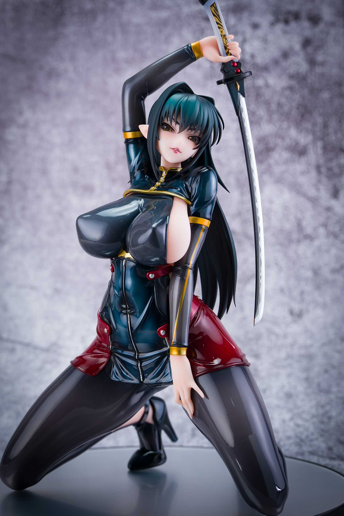 ・台座はミラー仕様。本体は自由設置で台座無しで自立も可能。刀は接着済み。